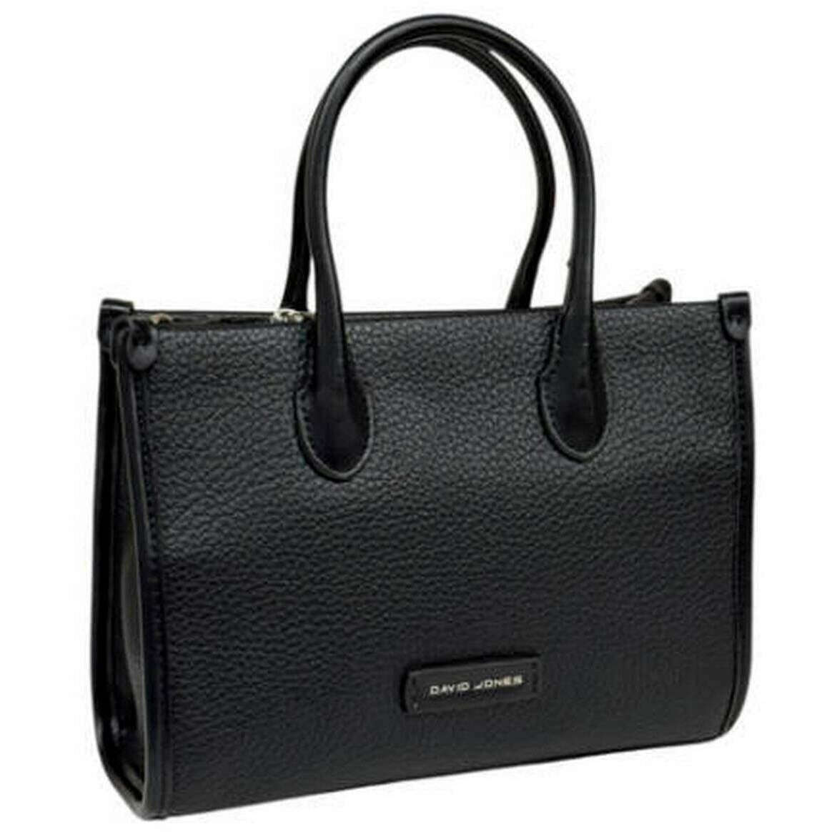 Using black 100% polyurethane, this small tote bag by David Jones is perfect for women and a must have. It measures 19cm(height) x 24cm(width) x 11cm(depth). All the bags come complete with david jones packaging. The David Jones Small Tote Bag - Black is a sophisticated and girly accessory designed for all occasions. This bag offers a main compartment that closes with a zip and interior pockets to organise your smaller items. With an attachable strap and top handles for versatile carrying, this is a practical choice for those seeking a stylish and practical everyday bag. Complete with a subtle David Jones branding.