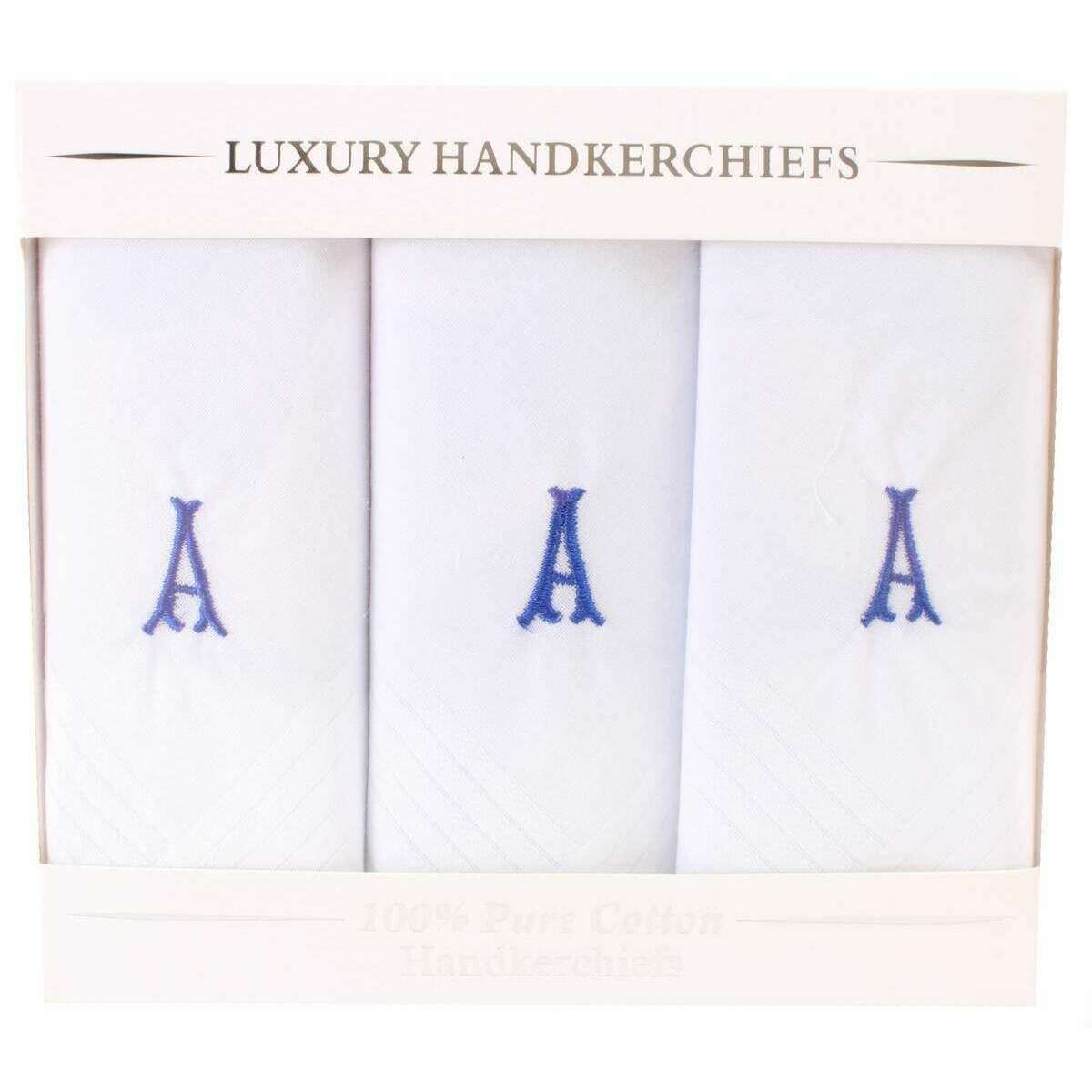 David Van Hagen A Initial 3 Pack Handkerchief - White/Blue
