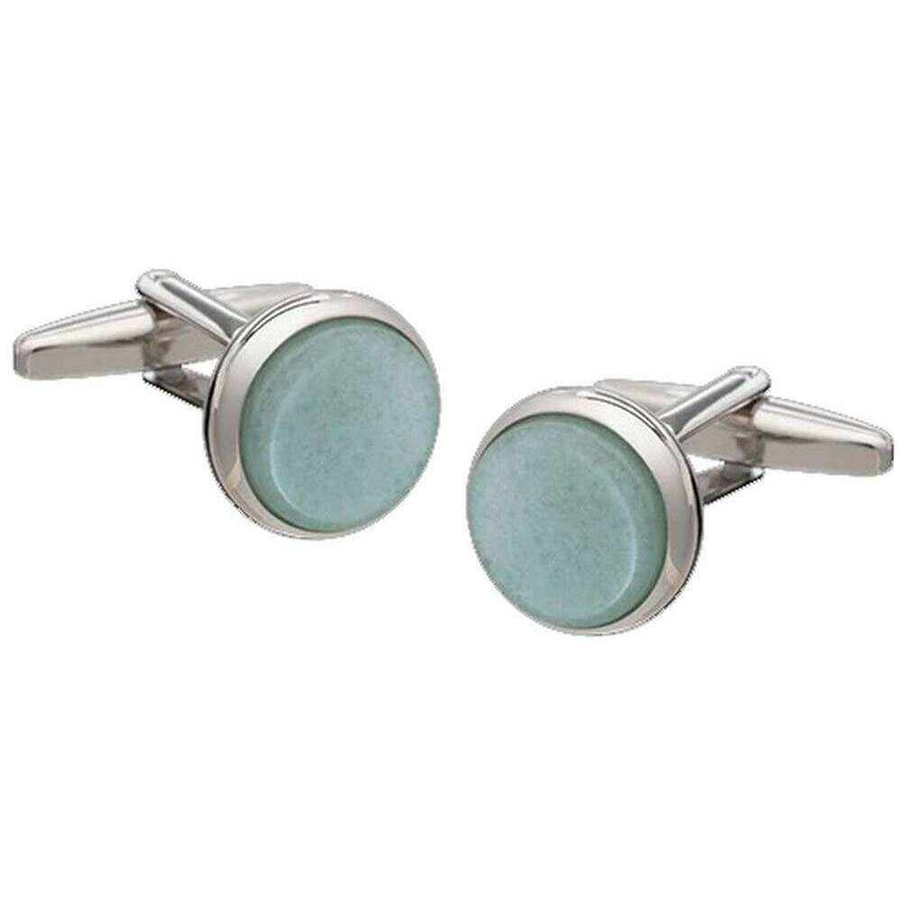 • Standard Cufflink Bascule , 14mm Diameter , Concave Dip Green Aventurine Stone , Natural Semi-Precious Stones , Silver Casing