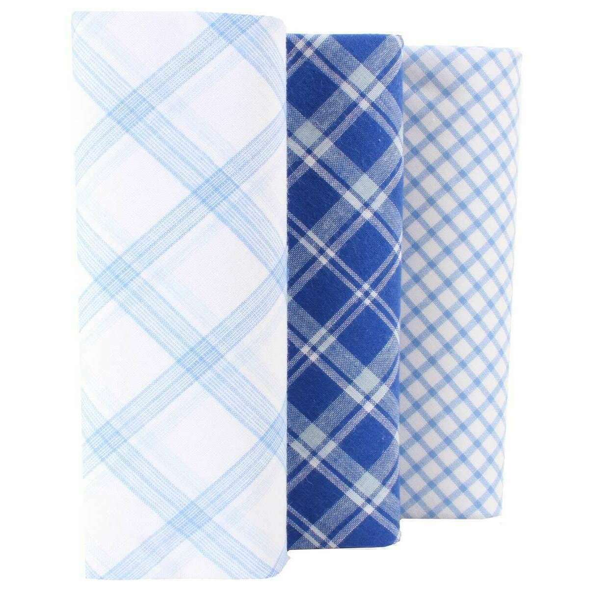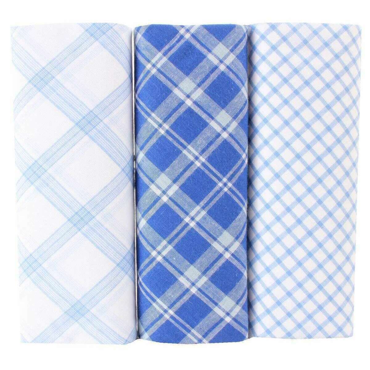 David Van Hagen Checked 3 Pack Handkerchief - Blue
