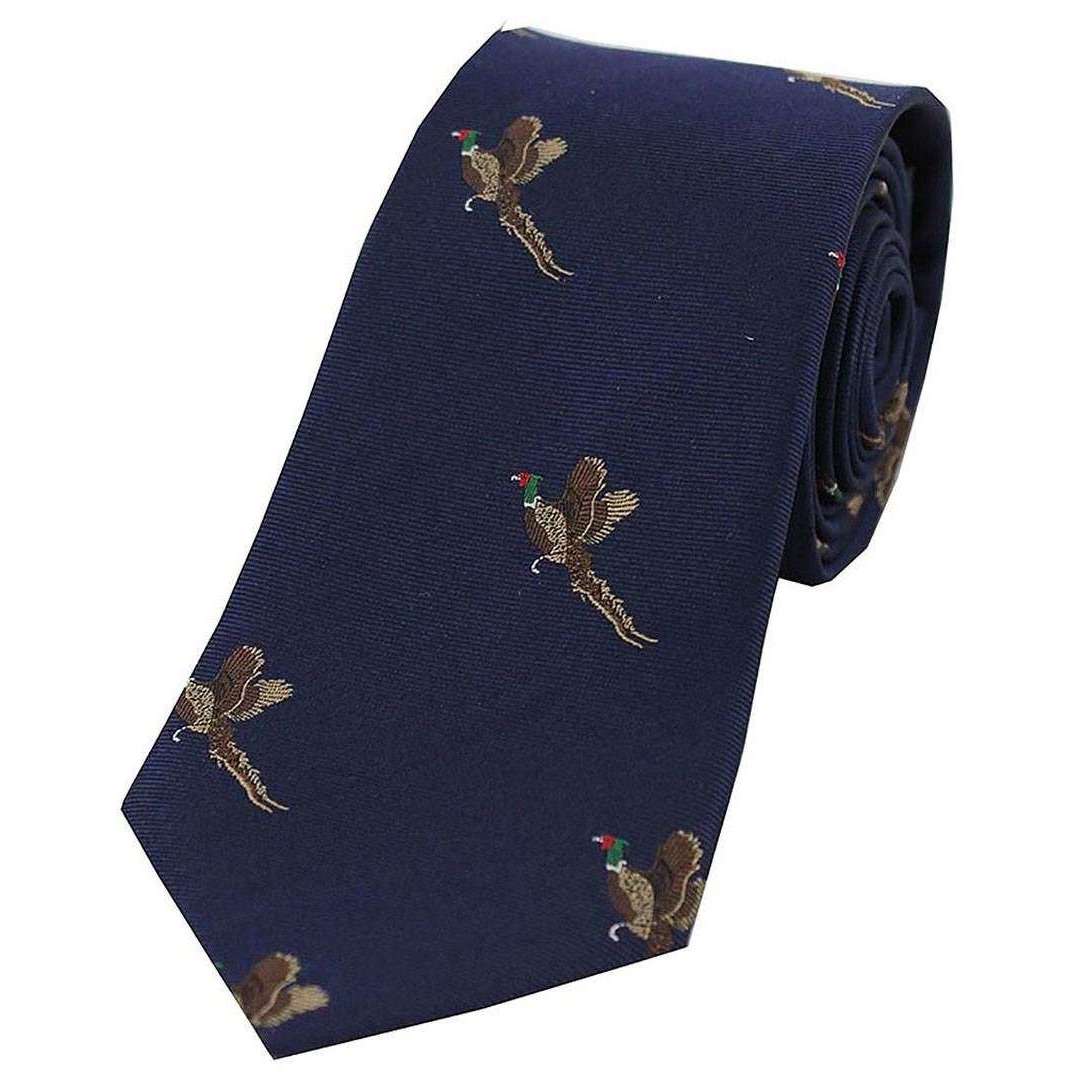 David Van Hagen Flying Pheasants Woven Country Silk Tie - Navy