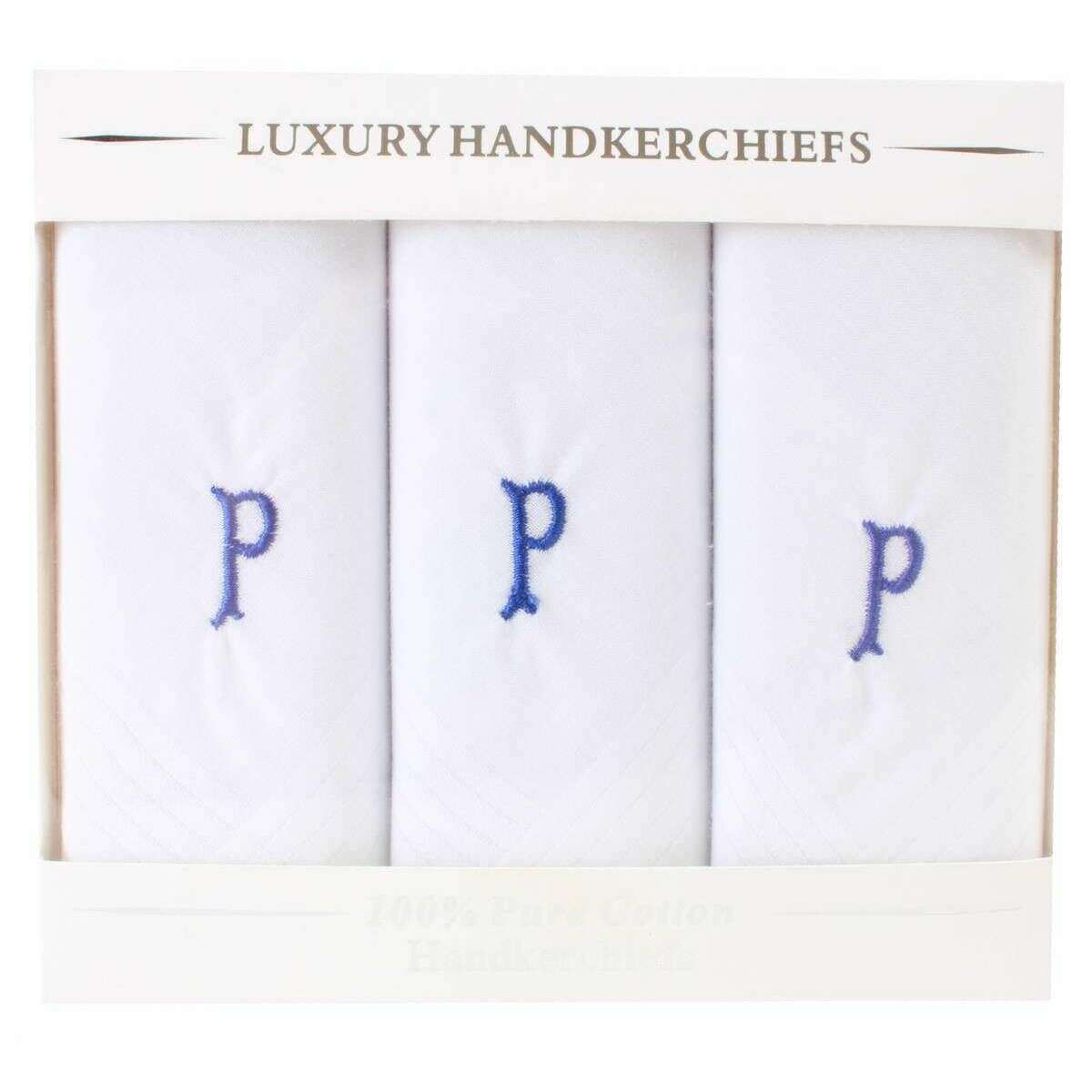 David Van Hagen P Initial 3 Pack Handkerchief - White/Blue