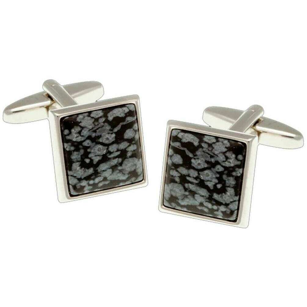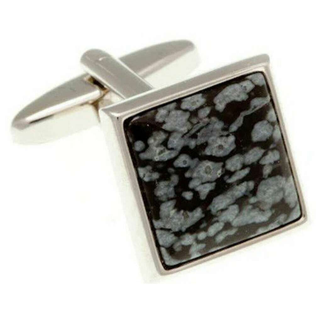 • Cabochon Semi-Precious Snowflake Stone , Polished Edges , Standard Cufflink Bascule
