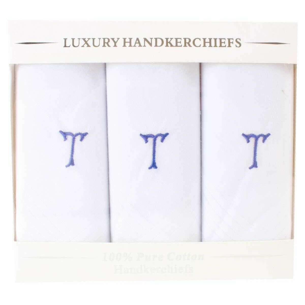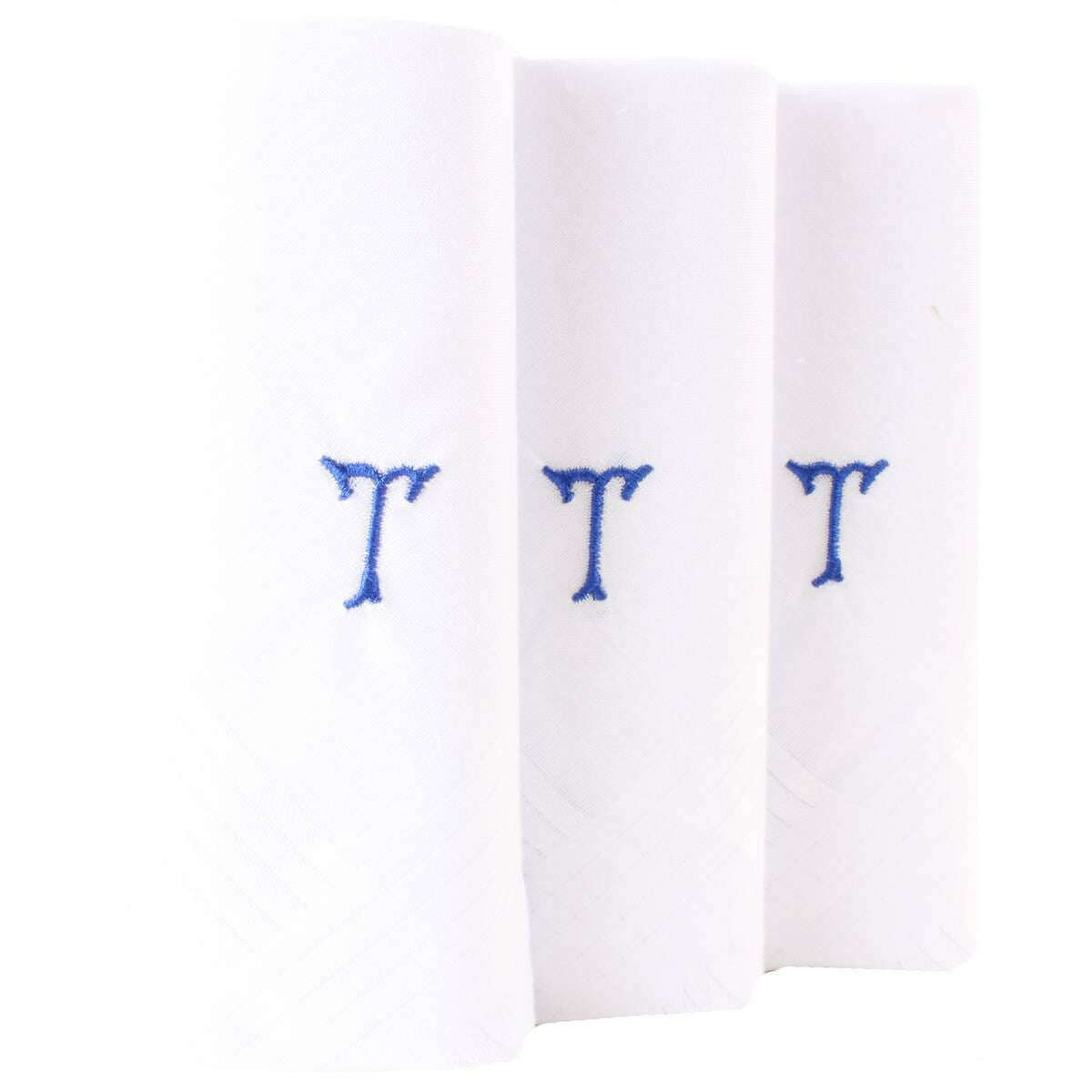 David Van Hagen T Initial 3 Pack Handkerchief - White/Blue