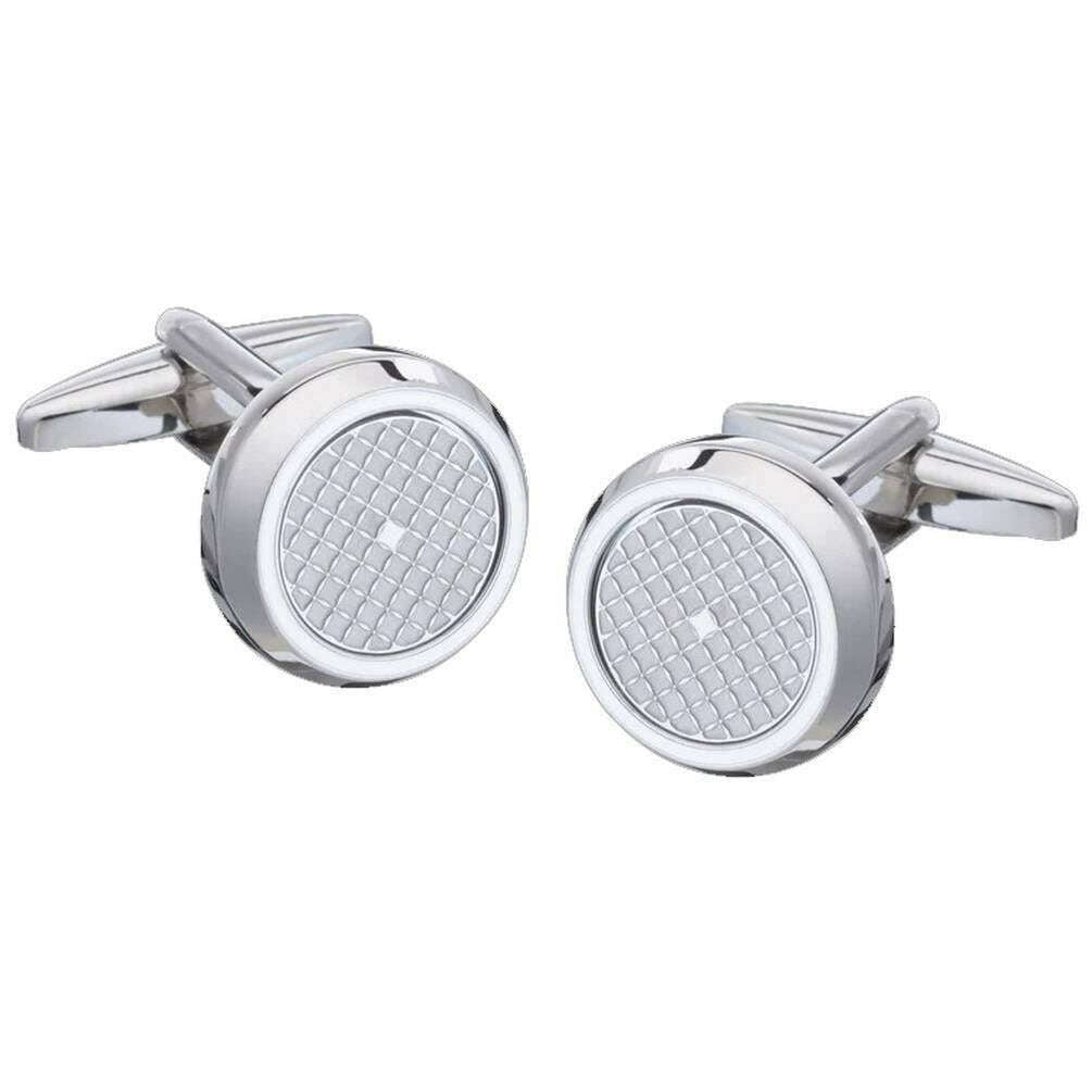 • Chequerboard Texture , White Rim and Centre , 16mm Diameter , Standard Cufflink Bascule