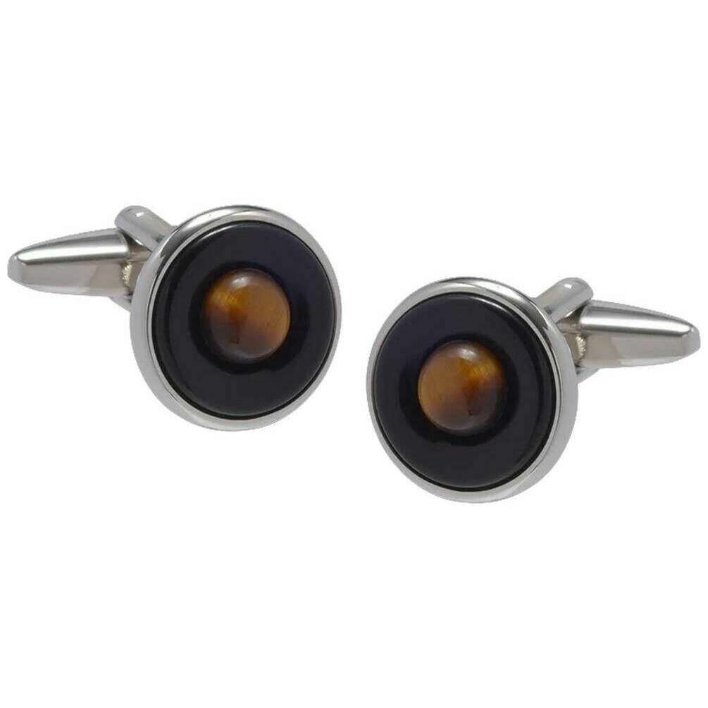 • Inspired by Rings of Saturn , Tiger Eye Cabochon Centre , Onyx Stone Middle , Natural Semi-Precious Stones , Standard Cufflink Bascule