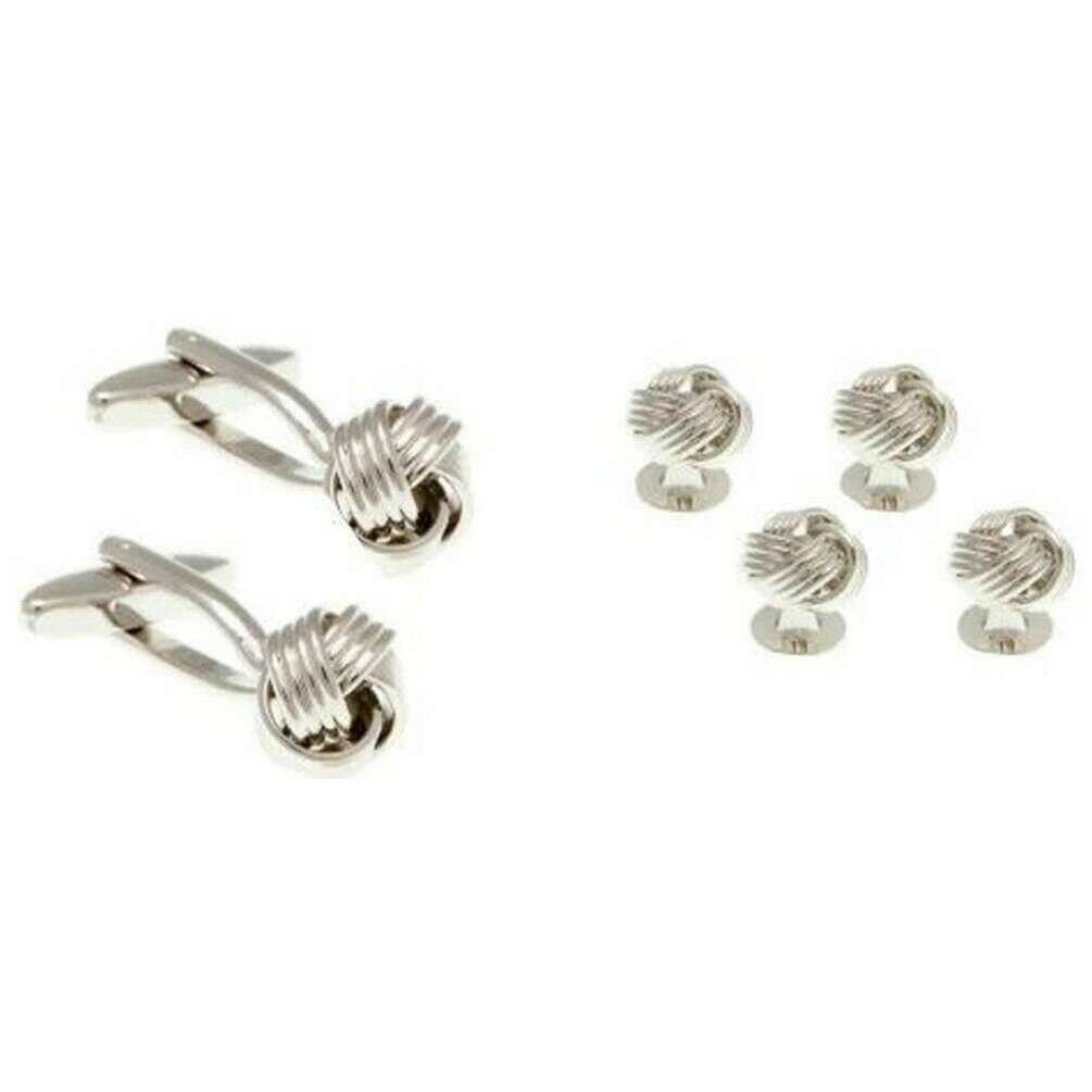 David Van Hagen Woven Knot Dress Studs and Cufflinks Set - Silver