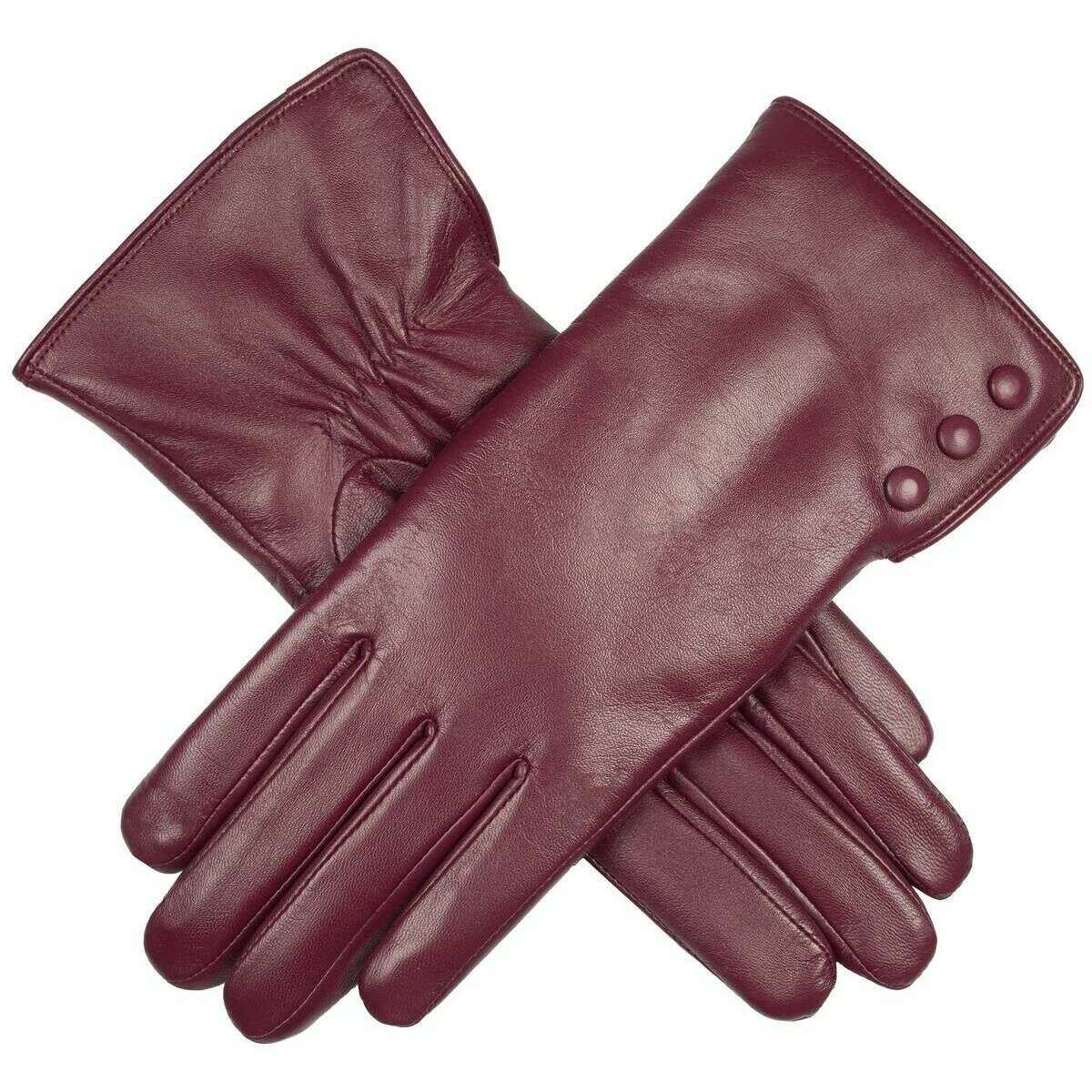 Dents Agata Water-Resistant Leather Gloves - Damson Burgundy