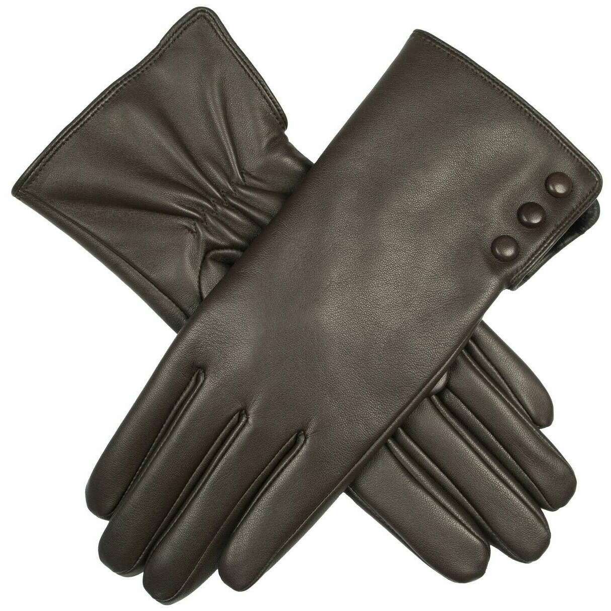 Introducing these women's agata water-resistant leather gloves by Dents, they are manufactured from 100% hairsheep leather and polyester faux fur lining in a mocca brown colour. Also the mocca brown gloves are designed in a plain pattern, All the gloves come complete with dents tags. The Dents Agata Water-Resistant Leather Gloves - Mocca Brown are a luxurious and elegant accessory, perfect for adding sophistication and comfort to any outfit. The interior of these gloves are lined with soft faux fur which adds a layer of warmth and enhances comfort, making the gloves a pleasure to wear. This pair features touchscreen technology enabling you to go on your phone without compromising warmth. These gloves are an ideal accessory for those looking to add a touch of elegance and practicality to their cold-weather wardrobe.