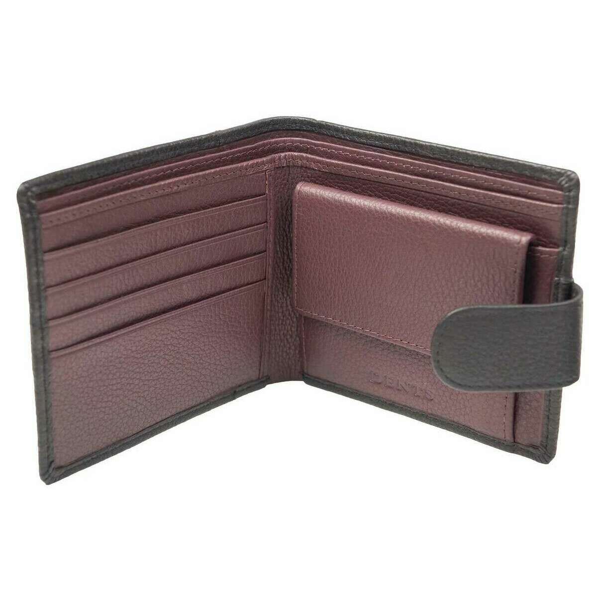 Using black 100% pebble grain leather, this cherwell coin bifold wallet by Dents is perfect for men and a must have. It measures 10cm(height) x 11cm(width). All the wallets come complete with dents tags. The Dents Cherwell Coin Bifold Wallet - Black/Bordeaux Burgundy features four card pockets, two note sections, two slip pockets and a coin pocket, this bifold wallet makes for the perfect gift! The front panel has a tab with an antique brass pressed stud clasp to keep the wallet closed. Lined with poly twill fabric for a smooth and graceful look this stylish accessory has a casual elegance about it.