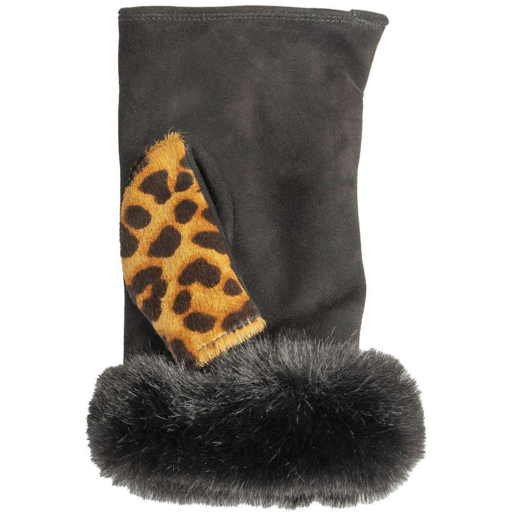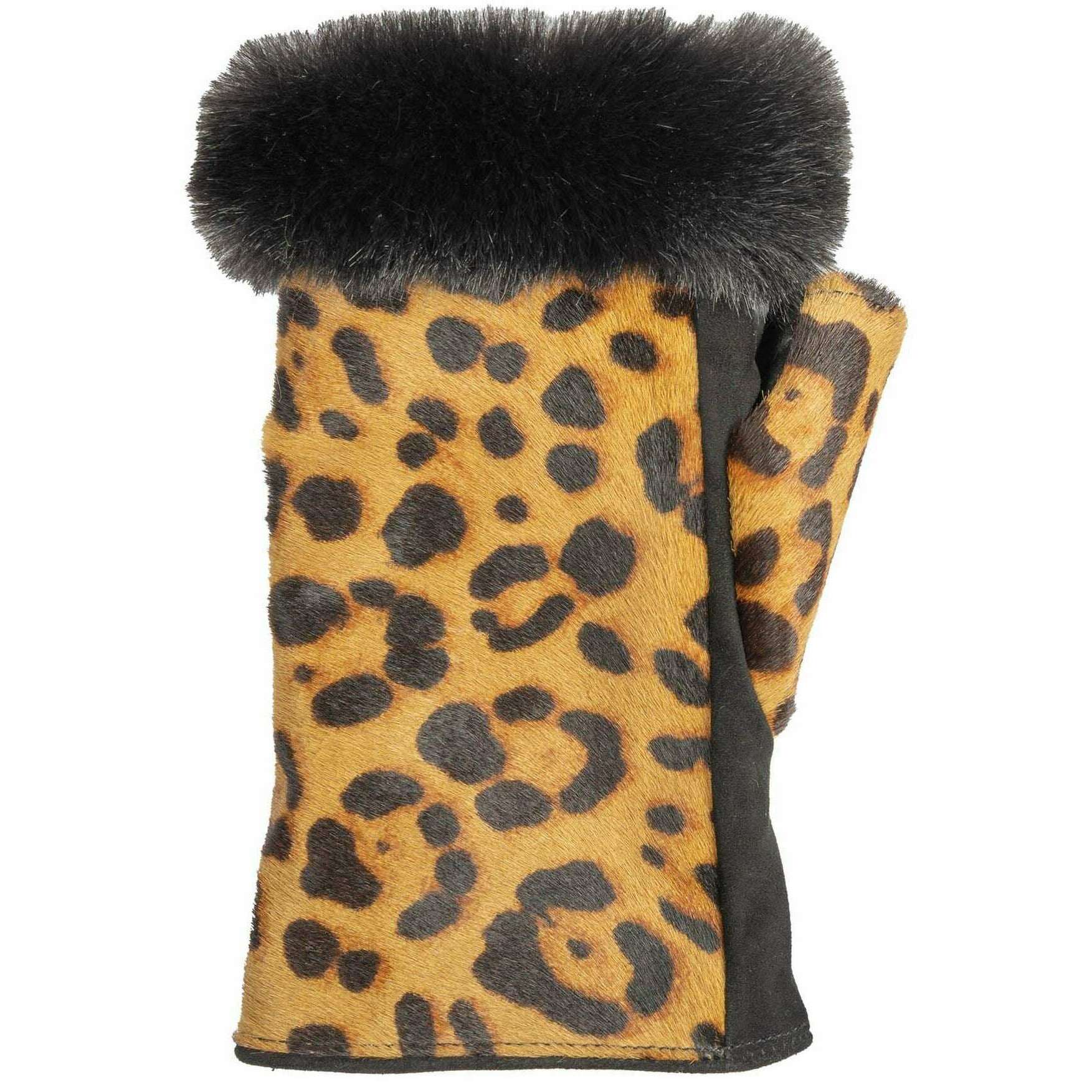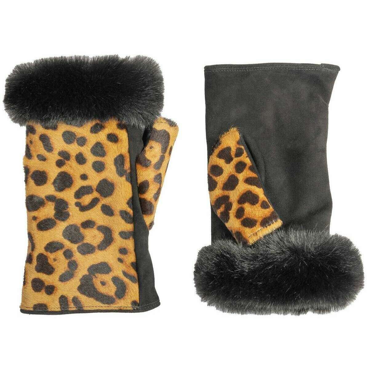 Dents Courtney Fingerless Mittens - Leopard/Black
