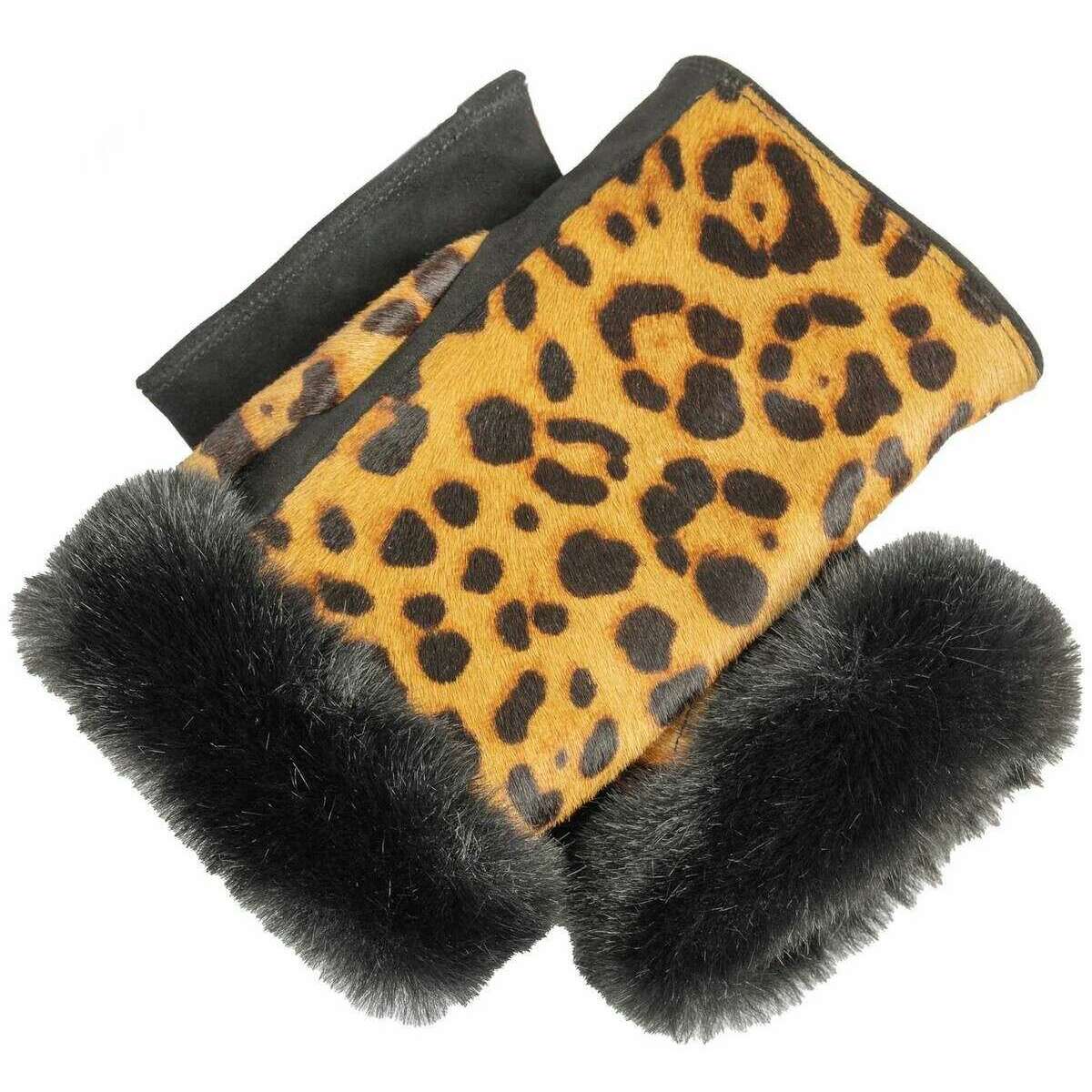 These women's courtney fingerless mittens have been made from 100% pony skin leather and polyester faux fur lining, featured in a black colour and are from the brand Dents. Also the leopard/black gloves are designed in a unique pattern, All the gloves come complete with dents tags. The Dents Courtney Fingerless Mittens - Leopard/Black will make a stylish and unique choice for your winter ensemble, giving your palms the warmth they need while letting your fingers free, making you less restricted. The gorgeous soft faux fur cuffs add a feminine touch and a branded D stud and inseam stitching offer a smooth and refined look.