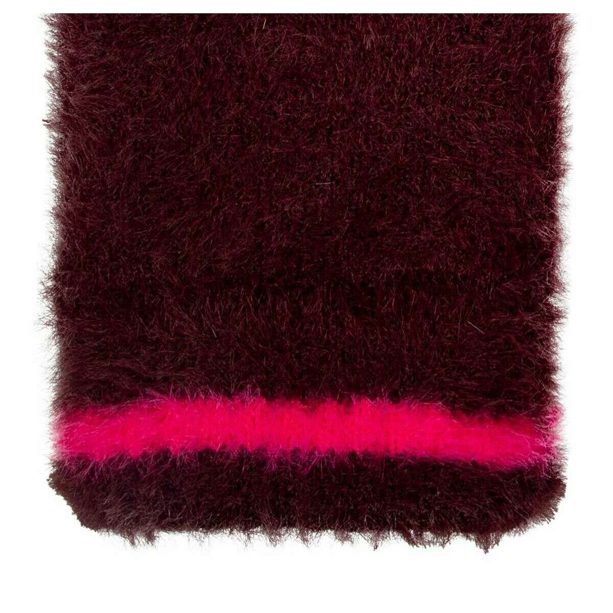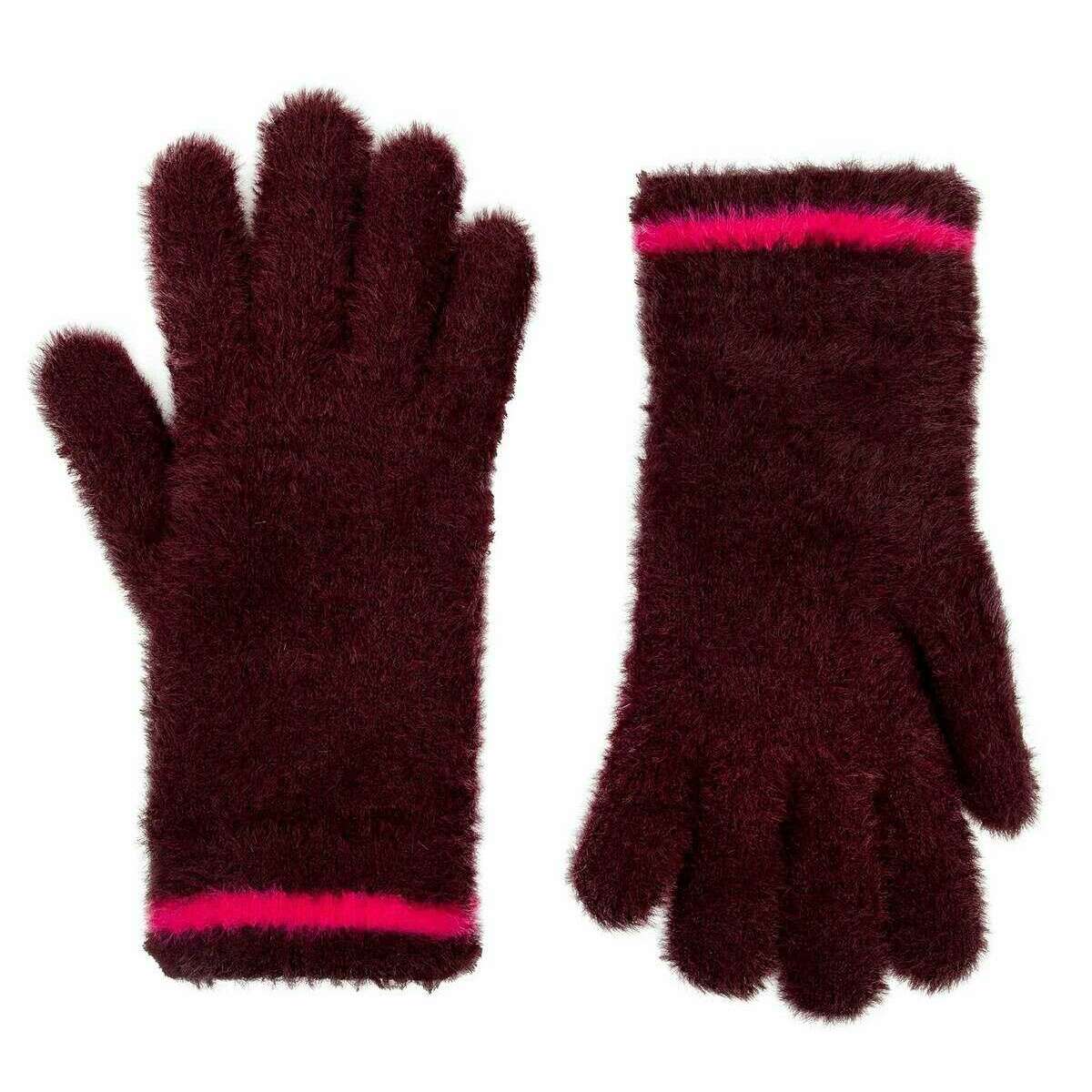 Dents Feather Yarn Knitted Gloves - Burgundy/Pink