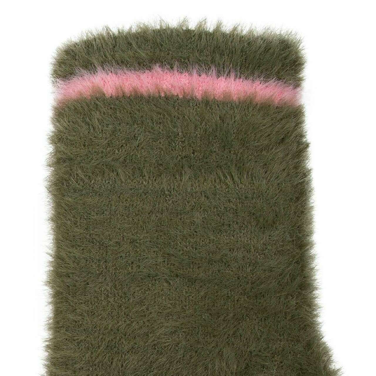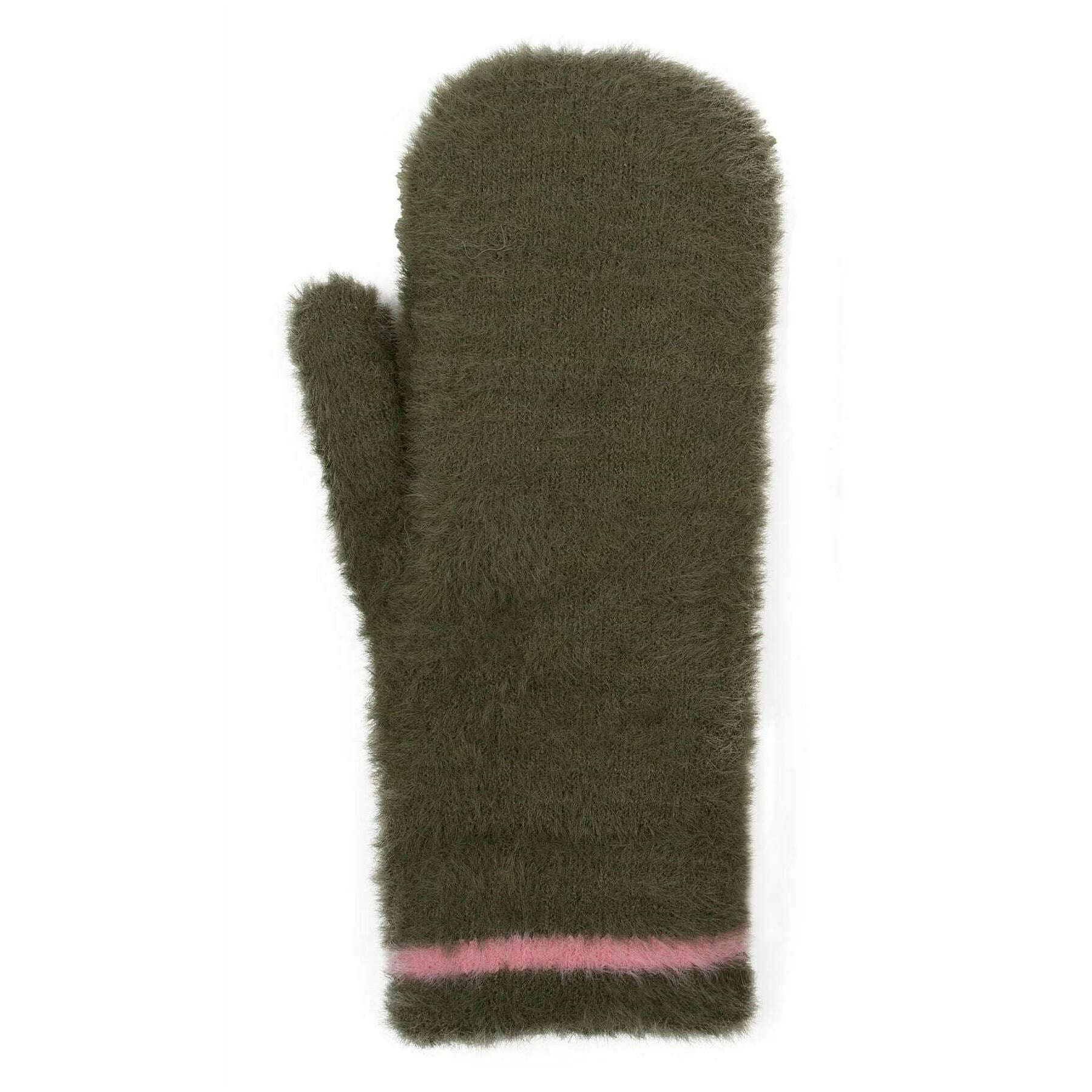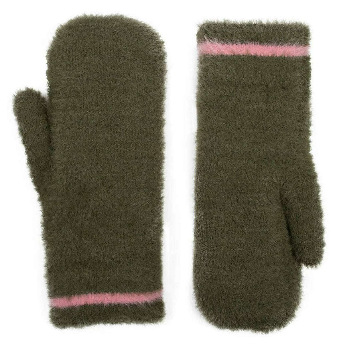 Dents Feather Yarn Mittens - Green/Pink