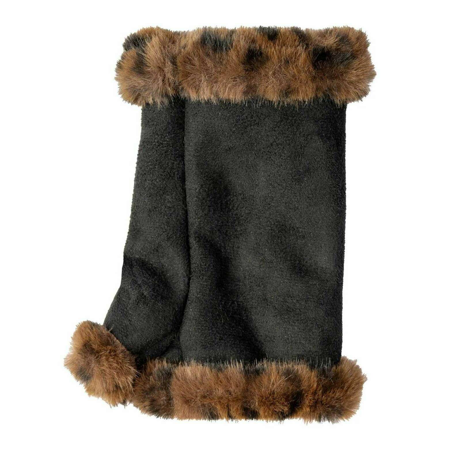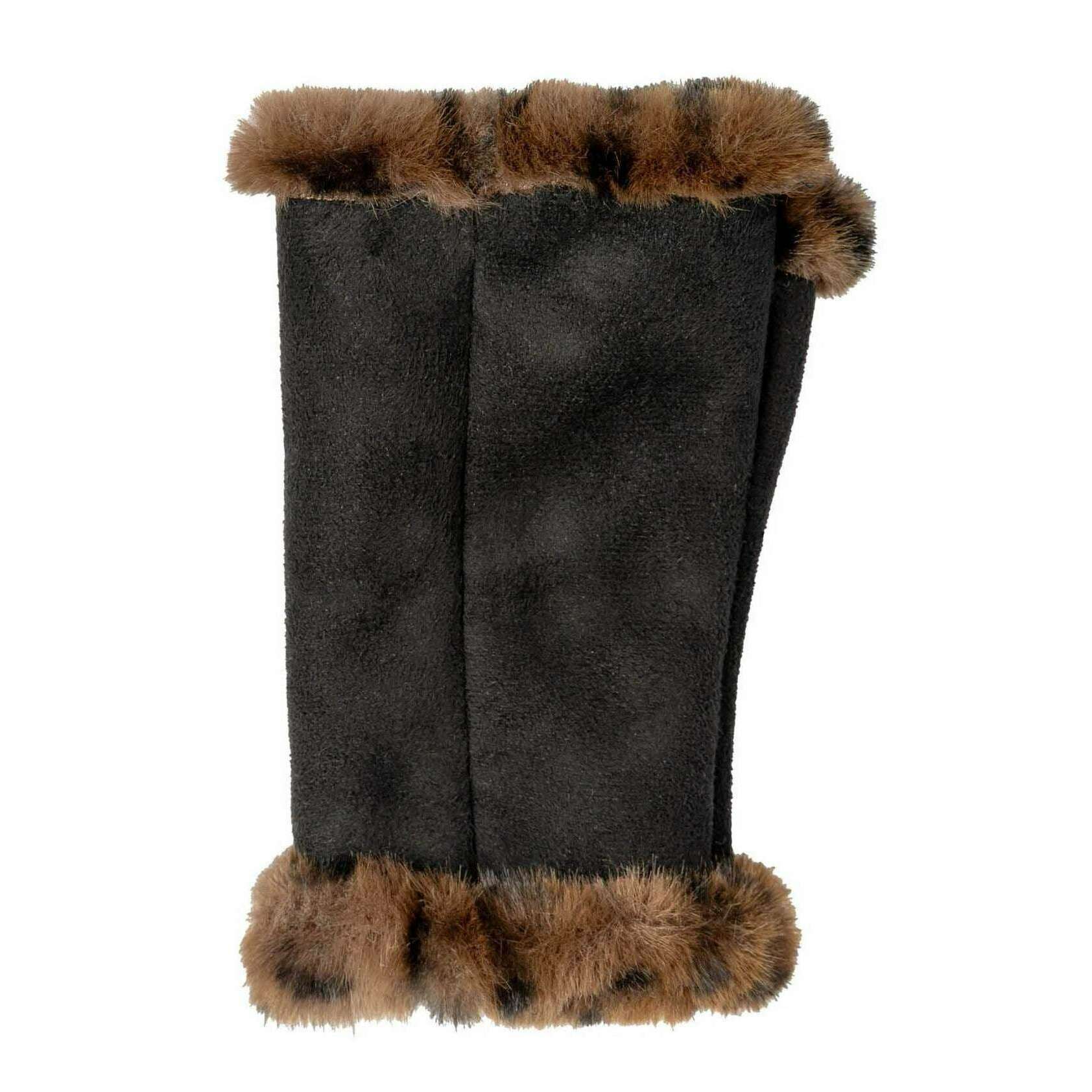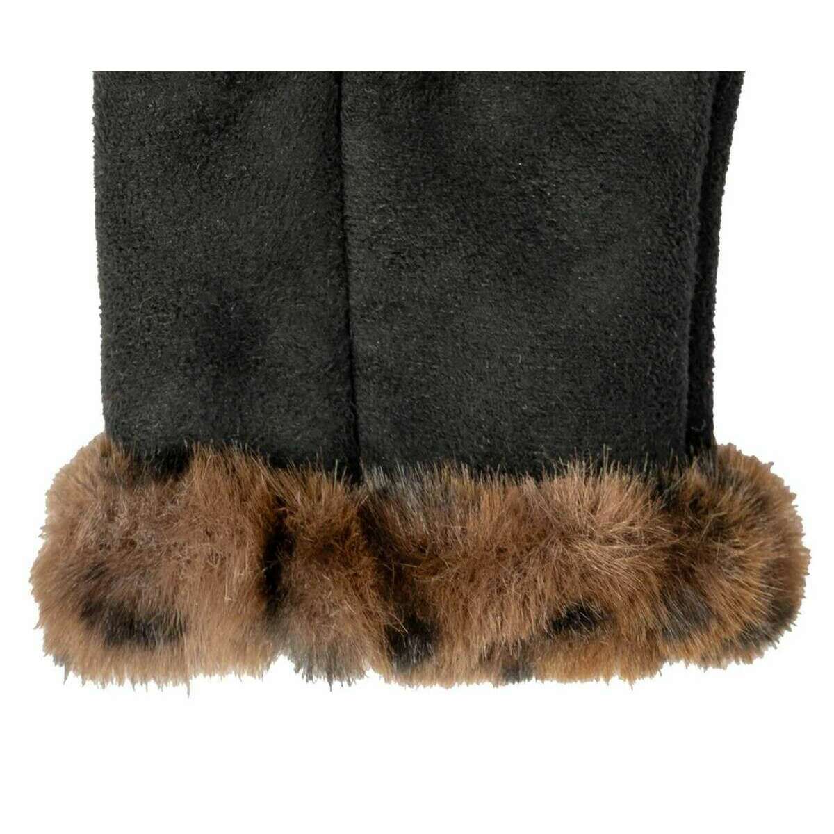 Dents Fingerless Faux Suede Mittens - Animal Brown/Black
