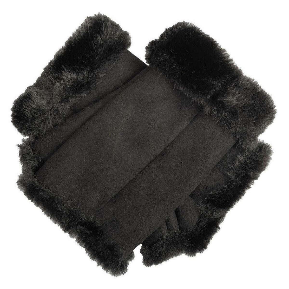 Dents Fingerless Faux Suede Mittens - Black/Black