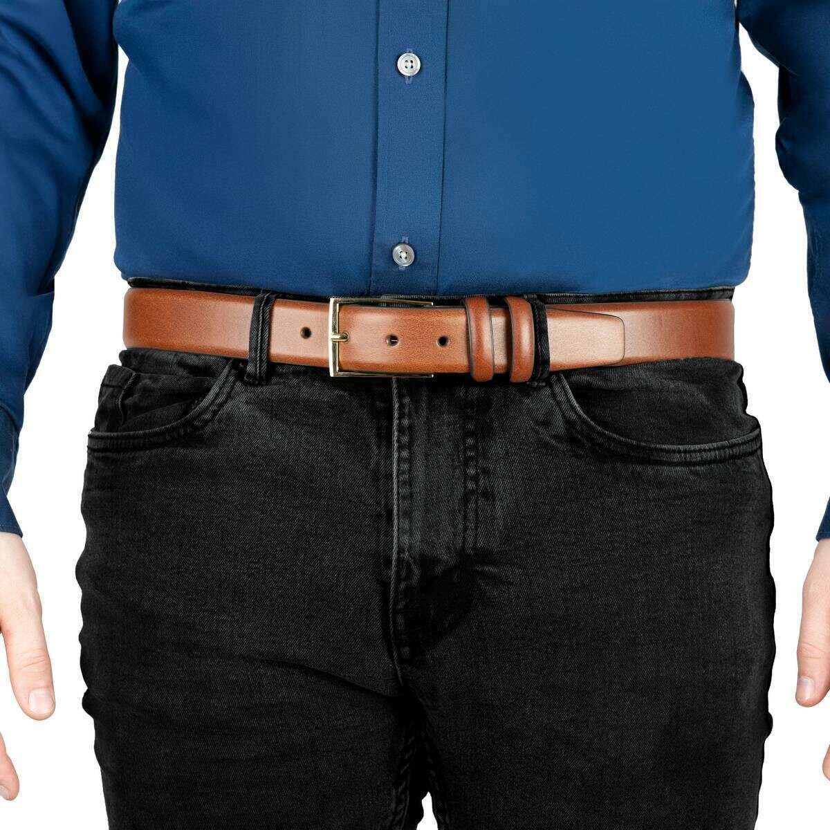 • Rounded Edges , Leather Lining , Square Buckle , Double Leather Keeper , Trapezoidal Belt Tip , Five Holes , 3.5cm Width
