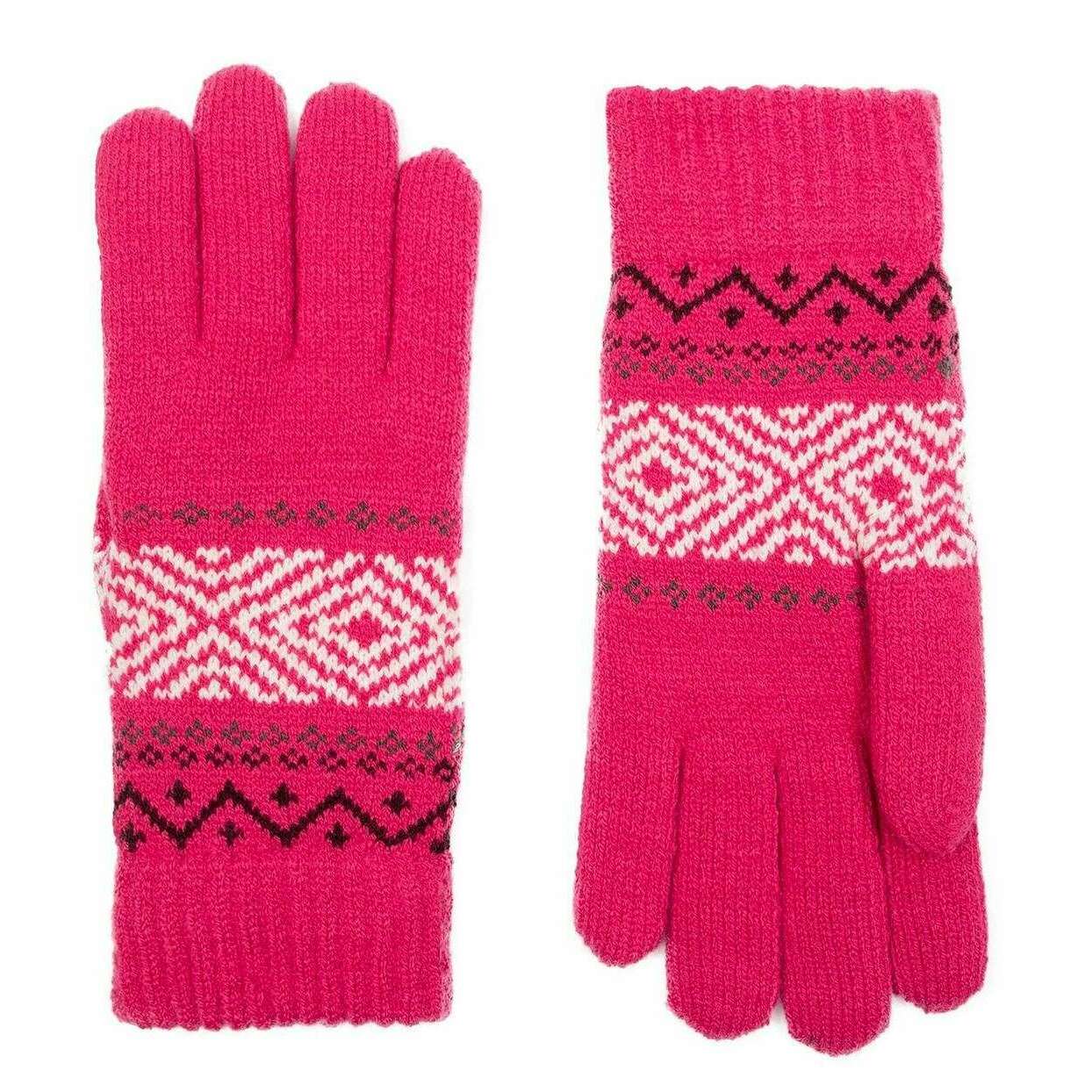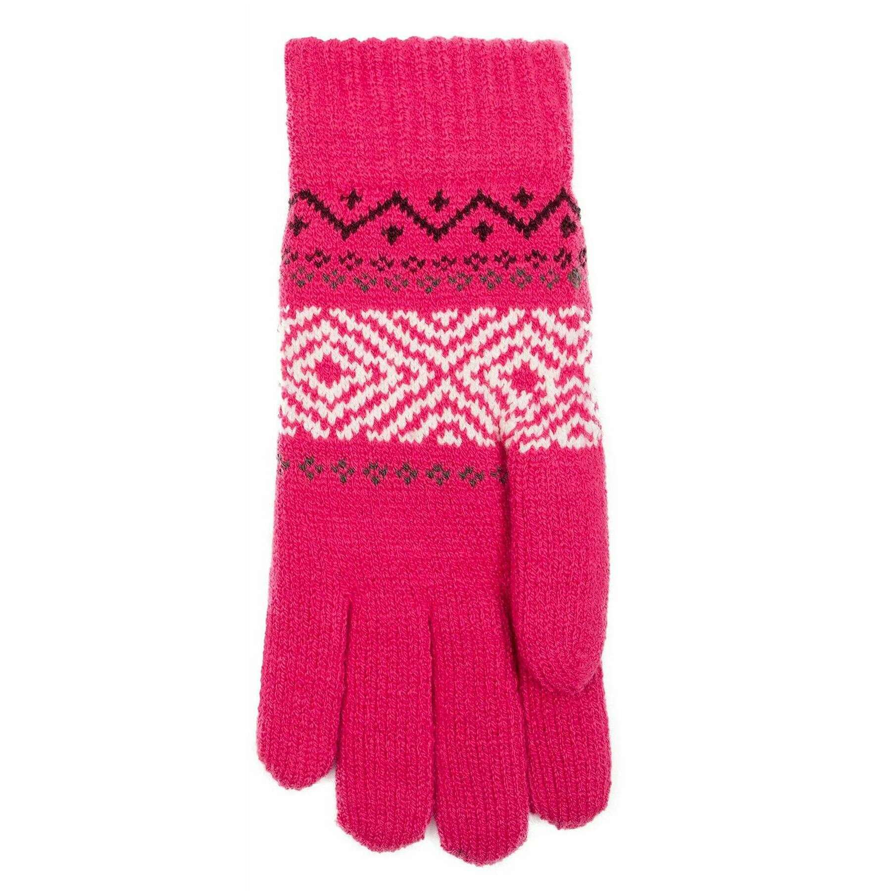 Dents Jacquard Geometric Knitted Gloves - Fuchsia Pink