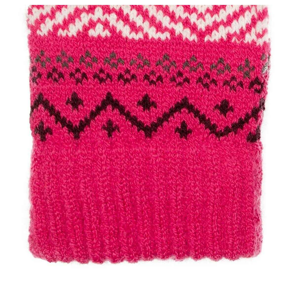 These women's jacquard geometric knitted gloves by the brand Dents are made from 80% acrylic and 20% nylon and are showcased in pink. Also the fuchsia pink gloves are designed in a plain pattern, It is recommended to hand wash only to keep these gloves in good condition. All the gloves come complete with dents tags. The Dents Jacquard Geometric Knitted Gloves - Fuchsia Pink feature an eye-catching pink, burgundy and white geometric design. These ribbed cuff gloves ensure a secure and comfortable fit, whilst doing everyday activities. Perfect for everyday wear in the colder months.