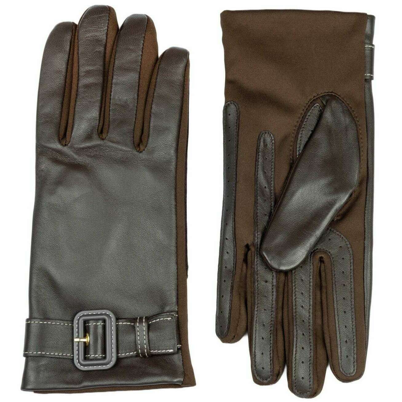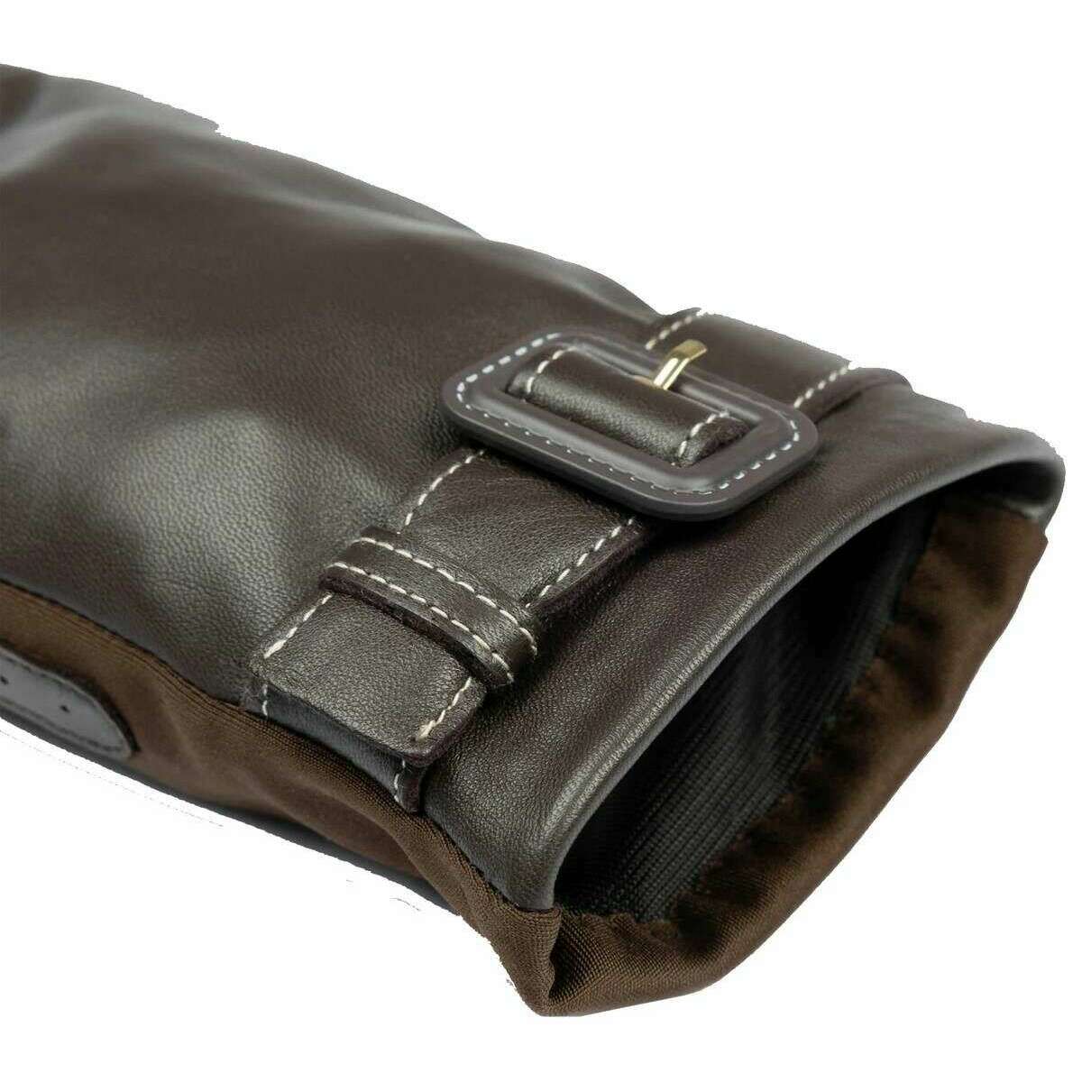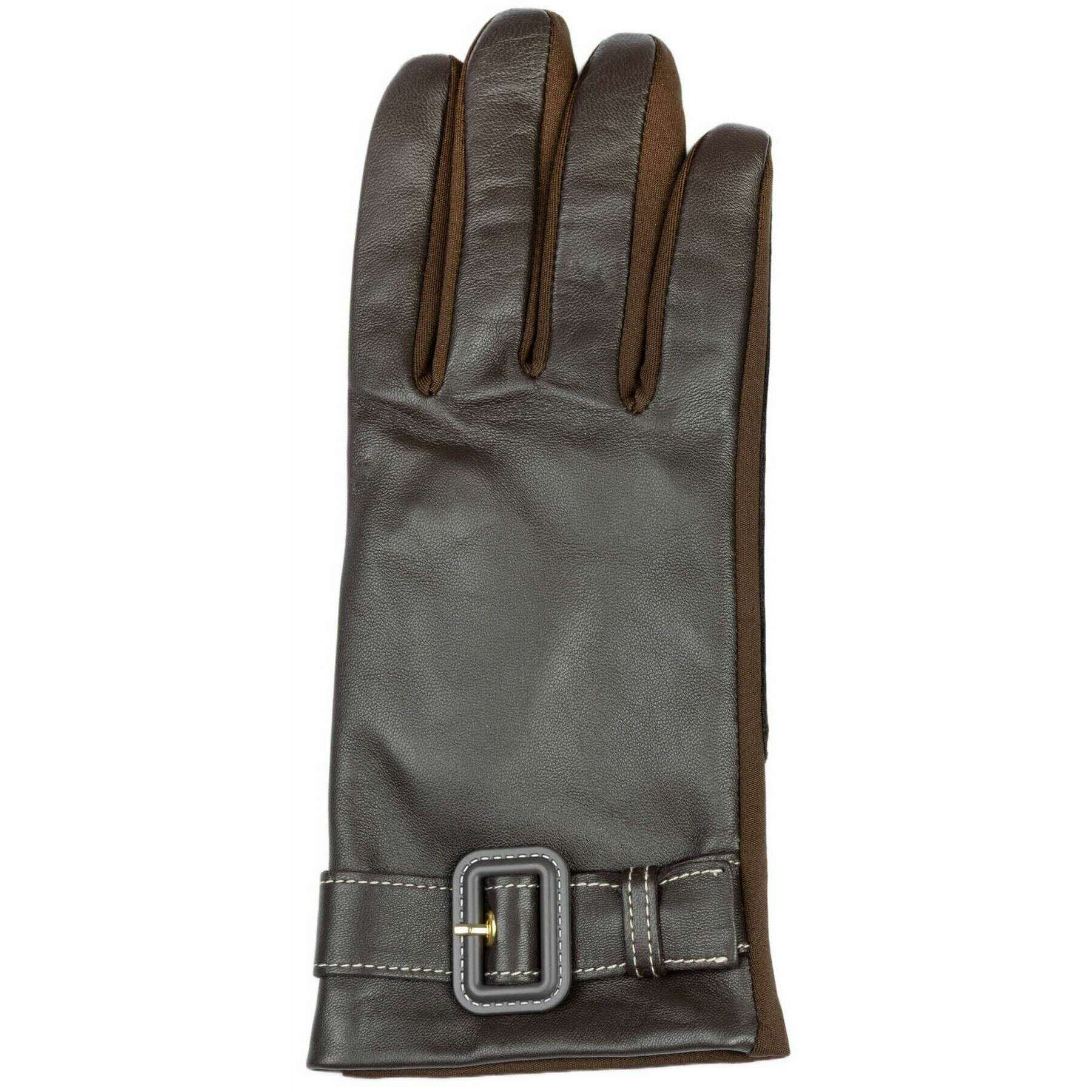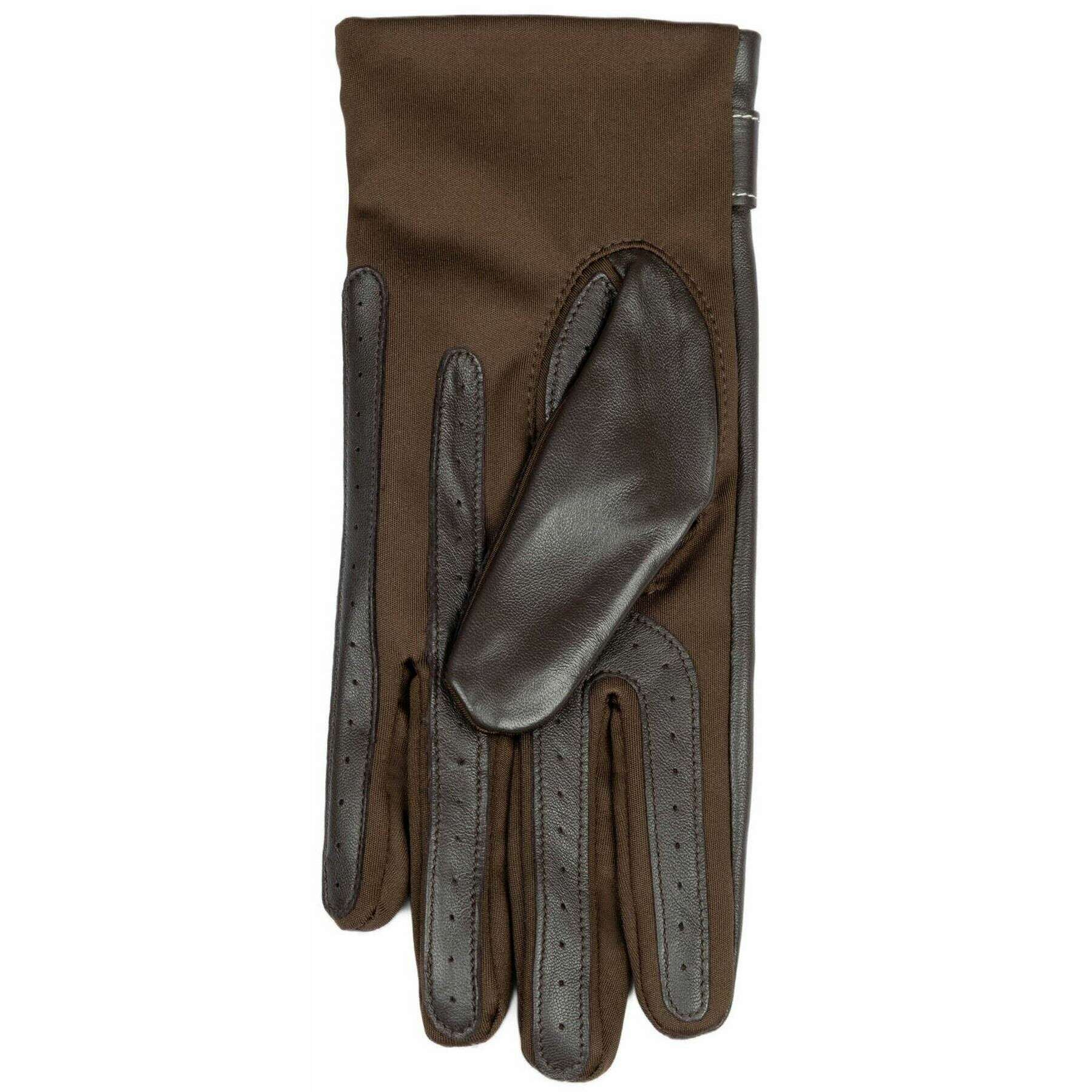 Brought to you by the brand Dents, these mocca brown women's lyla leather backed water-resistant gloves are made from 100% polyester inseam. Also the mocca brown gloves are designed in a plain pattern, All the gloves come complete with dents tags. The Dents Lyla Leather Backed Water-Resistant Gloves - Mocca Brown are a great choice for a high-end and luxurious look. They feature a stretch polyester palm for a modern silhouette, as well as a comfortable wear and a water-resistant leather to keep your hands protected from the cold rain. To ensure a clean finish the seams are hidden thanks to inseam stitching. Completing this pair is the contrast stitching leather buckle at the wrist.