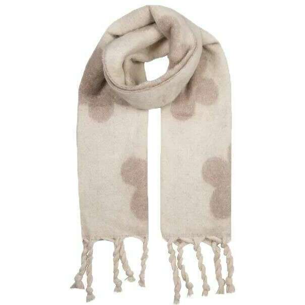 Dents Reversible Floral Blanket Tassel Scarf - Natural Cream