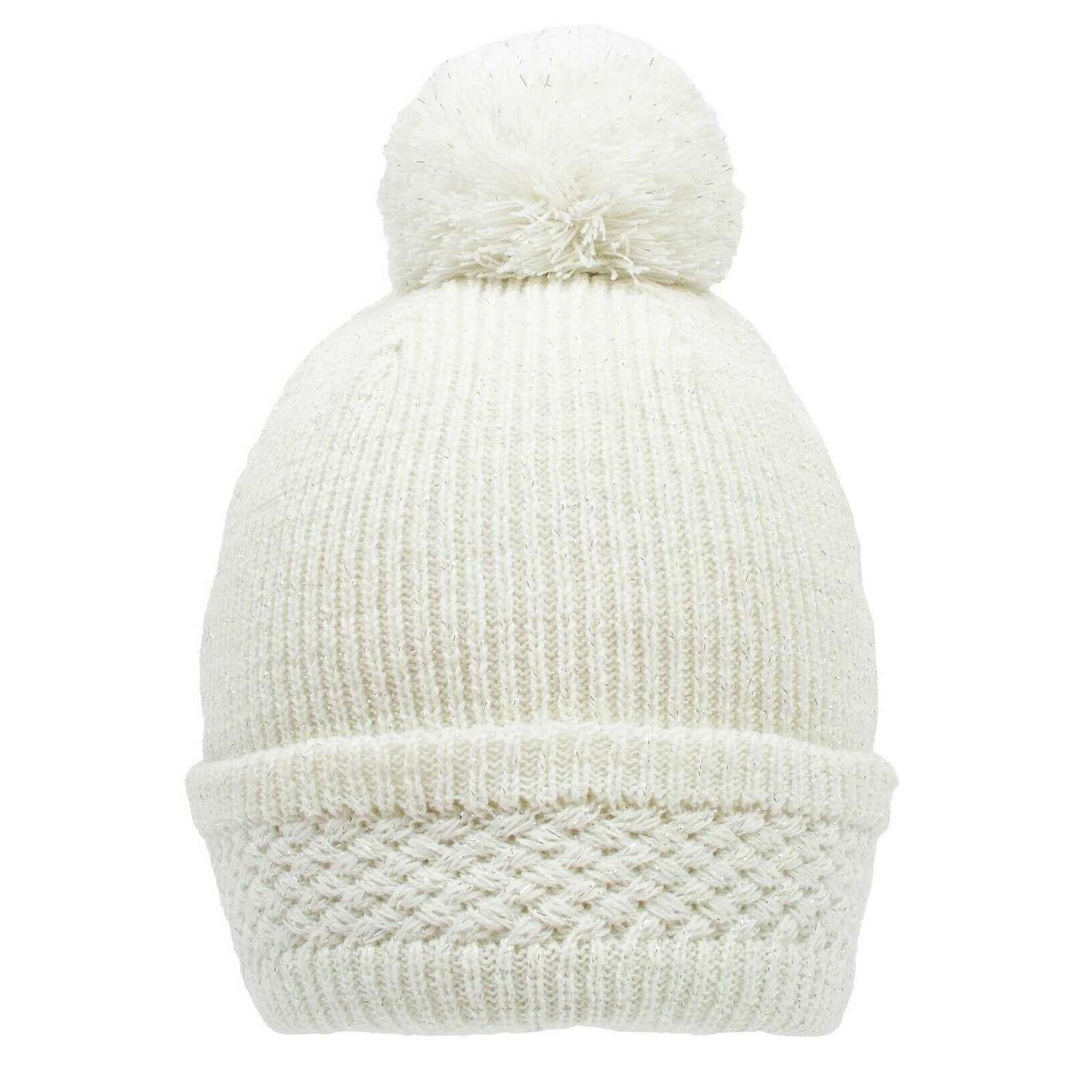 Dents Ribbed Knit Metallic Yarn Bobble Hat - Winter White