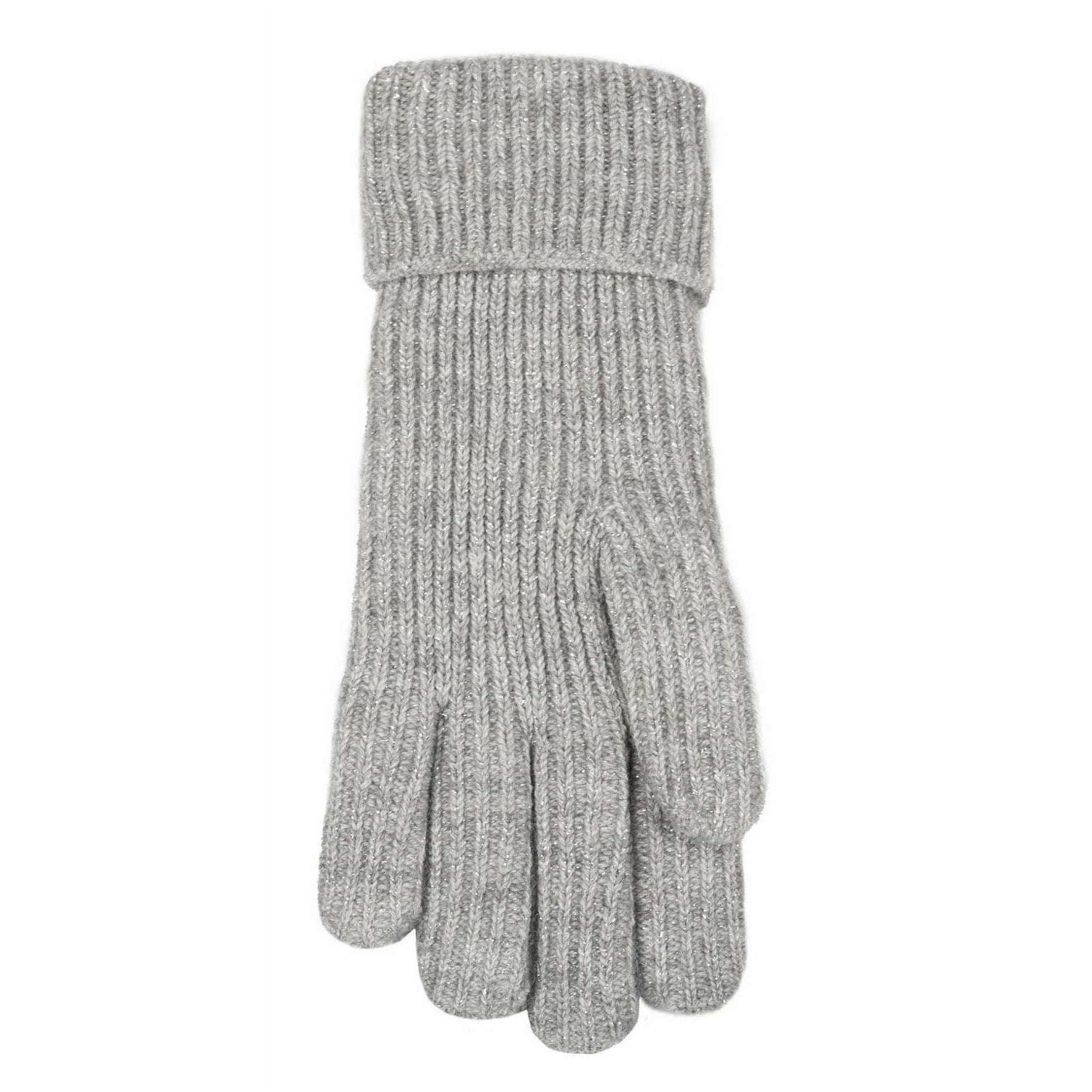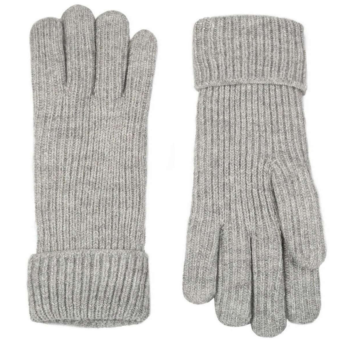 Dents Ribbed Knit Metallic Yarn Gloves - Dove Grey