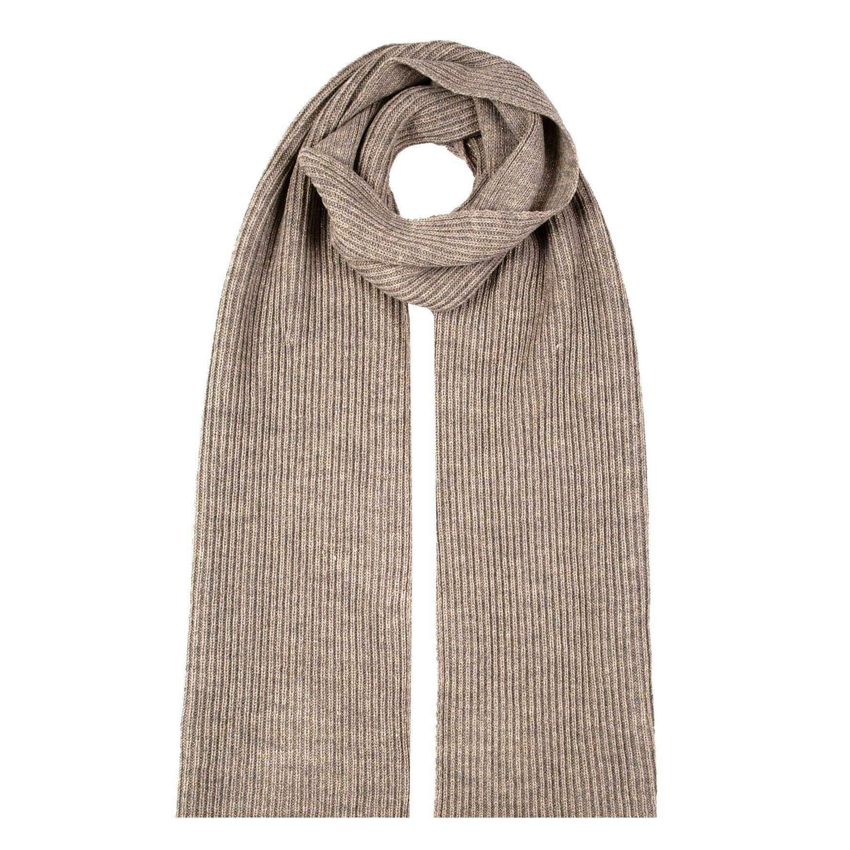 Dents Ribbed Knit Metallic Yarn Scarf - Oatmeal Beige