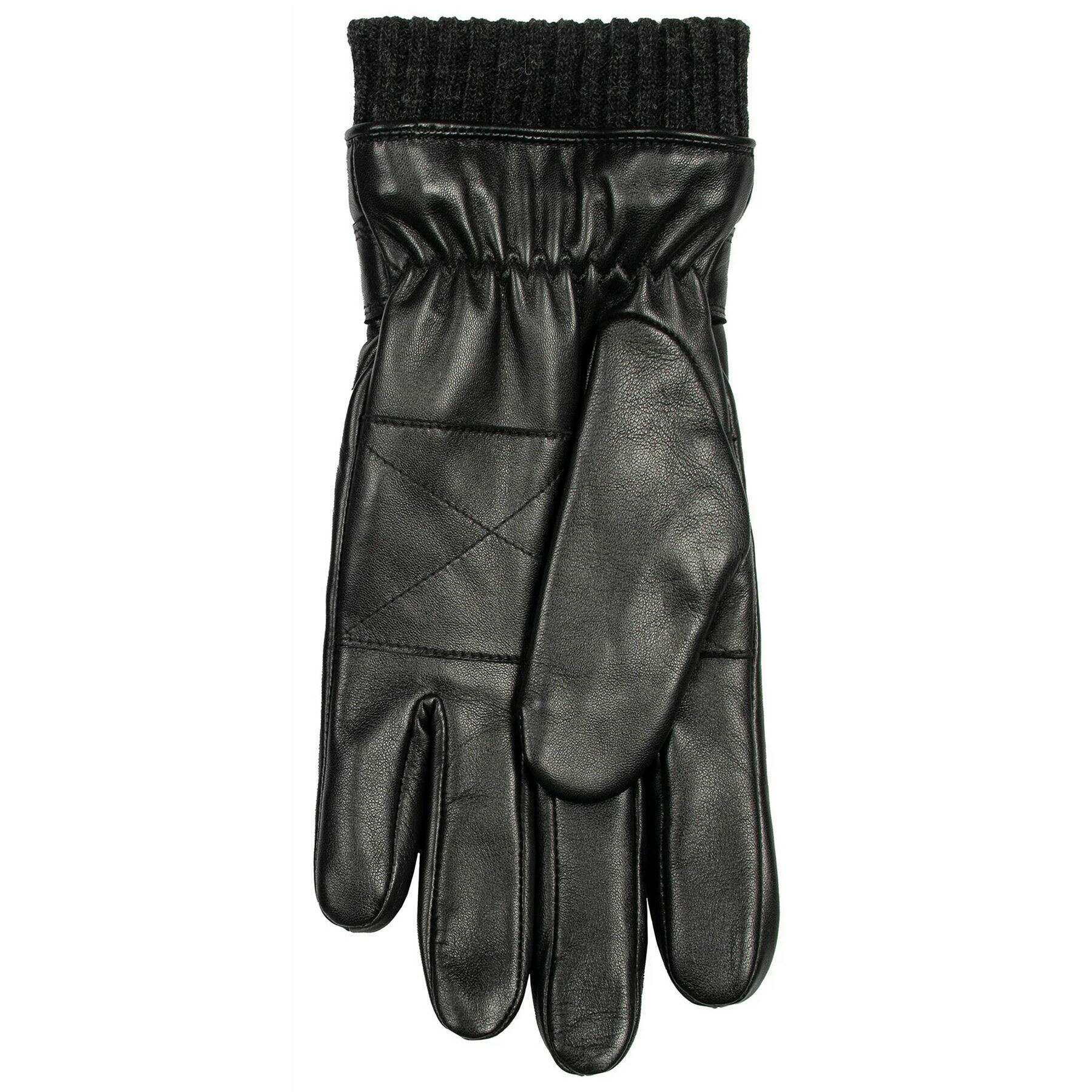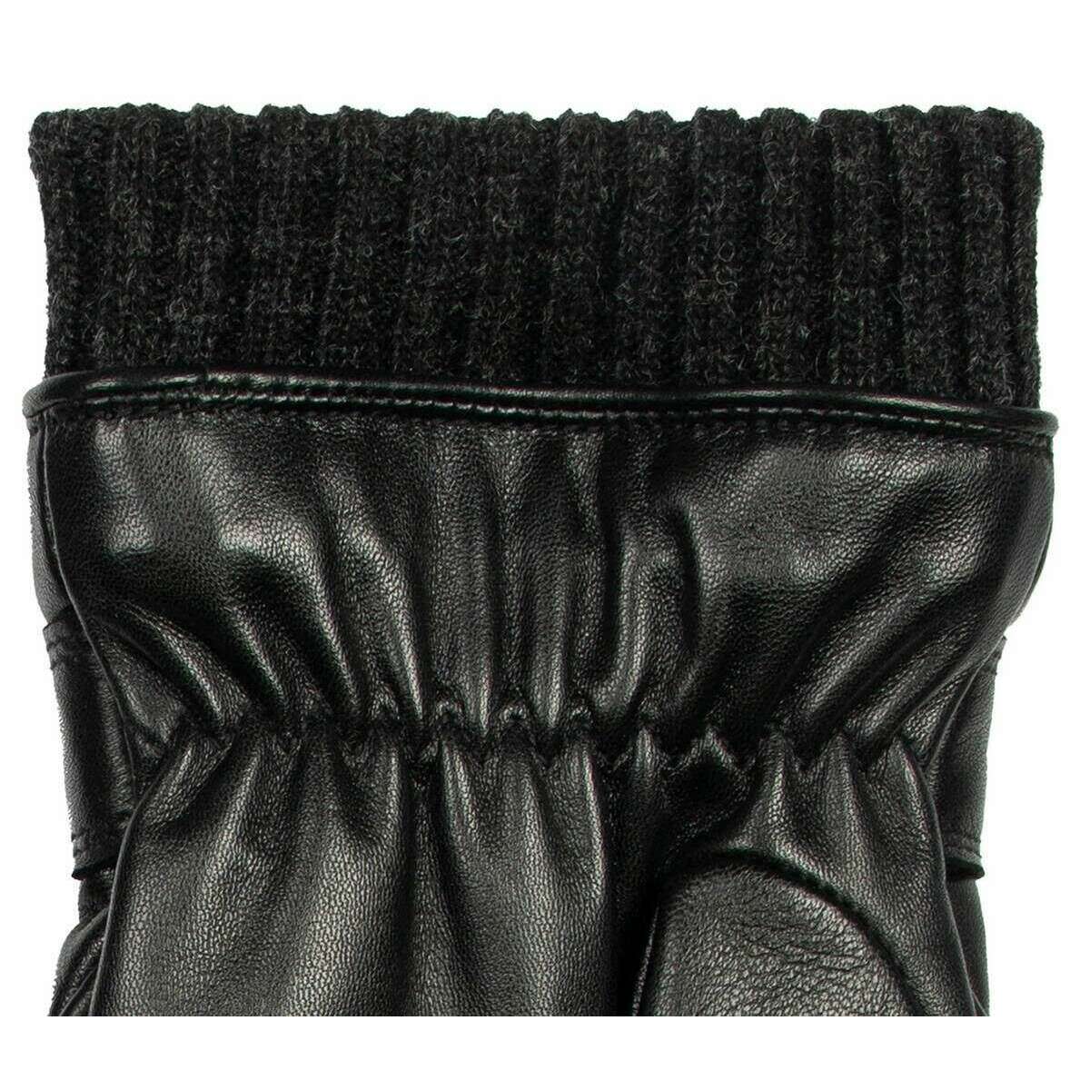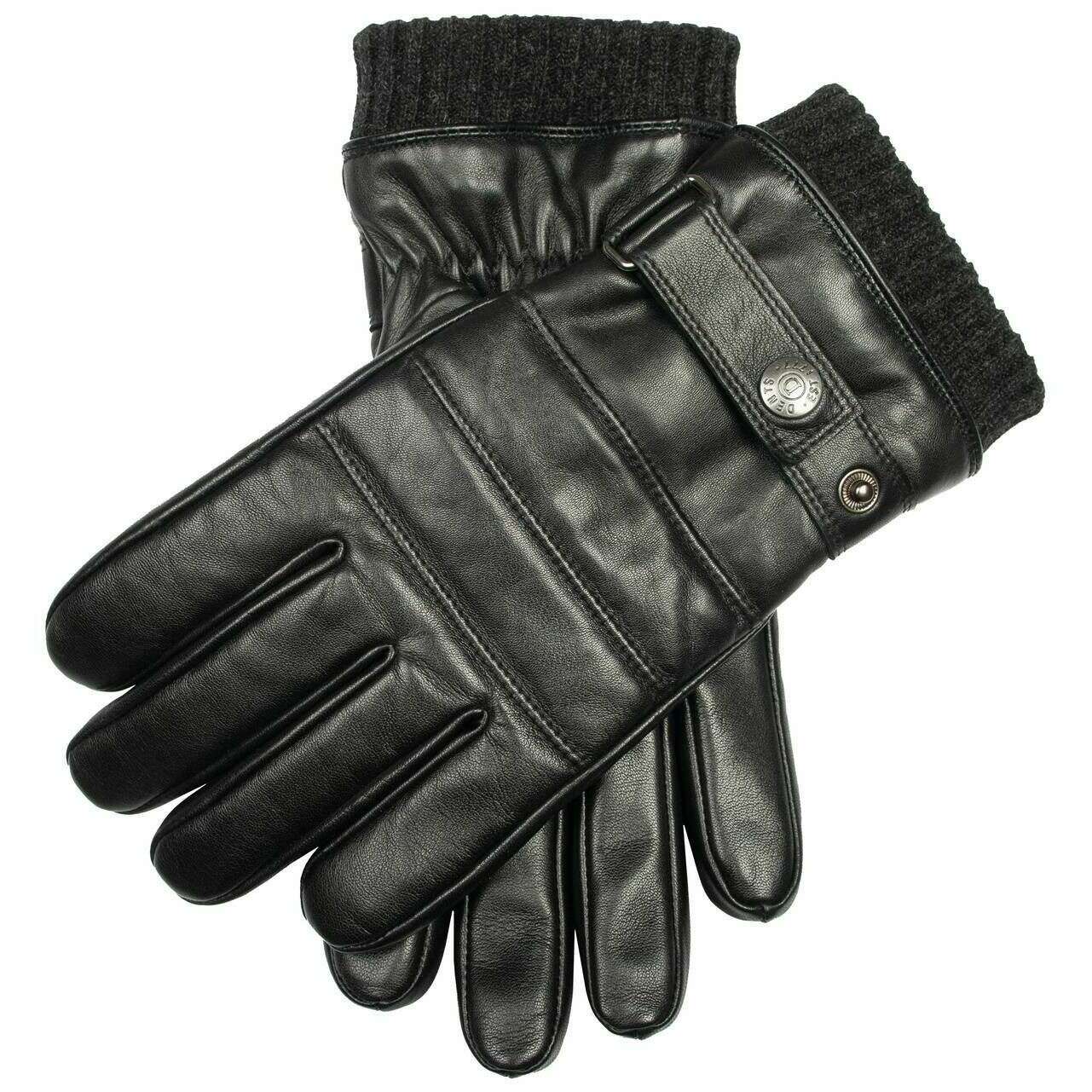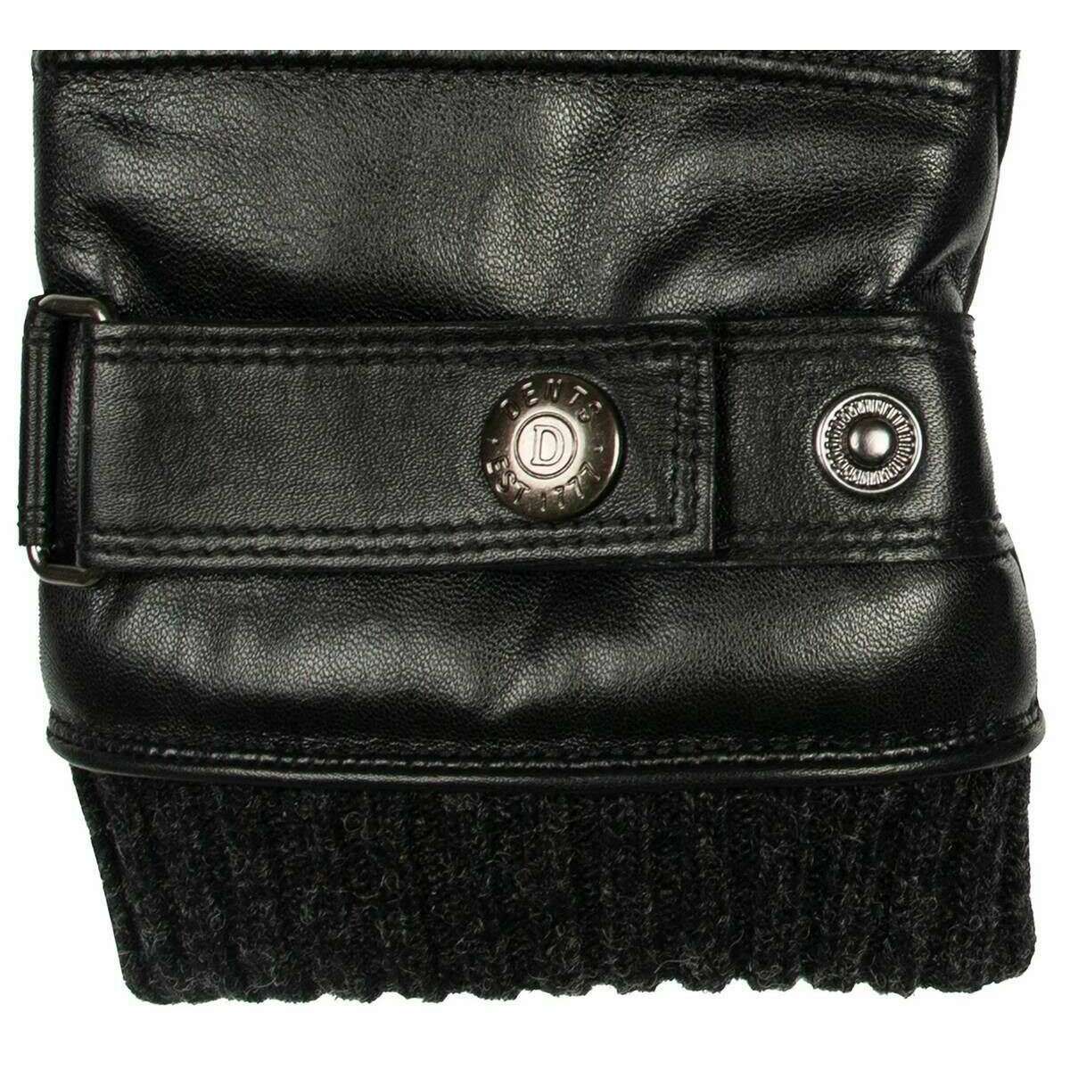 Dents Skipton Knitted Cuff Stitch Detail Leather Gloves - Black