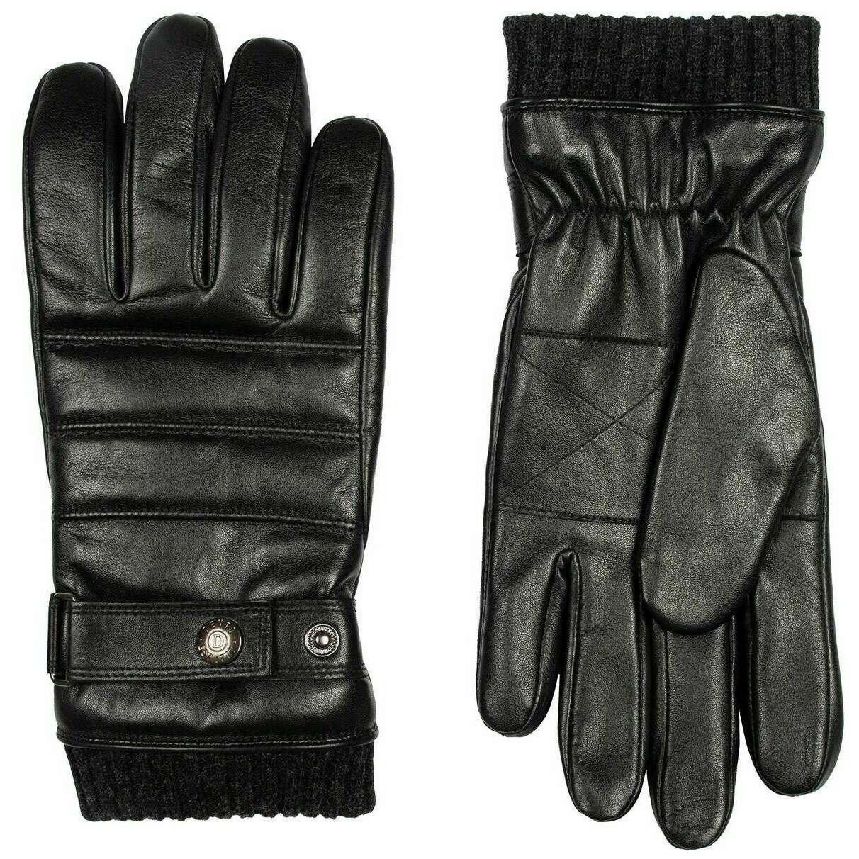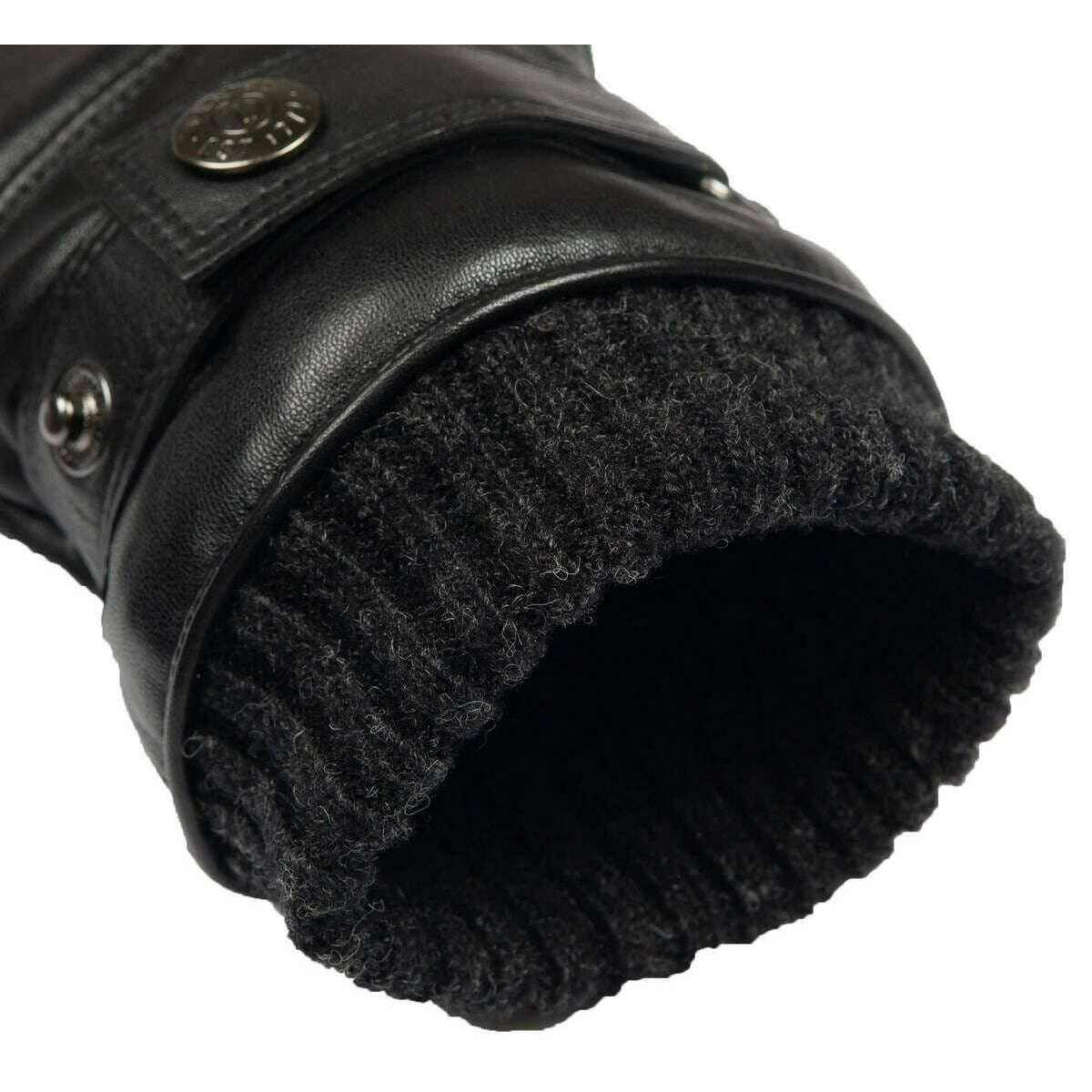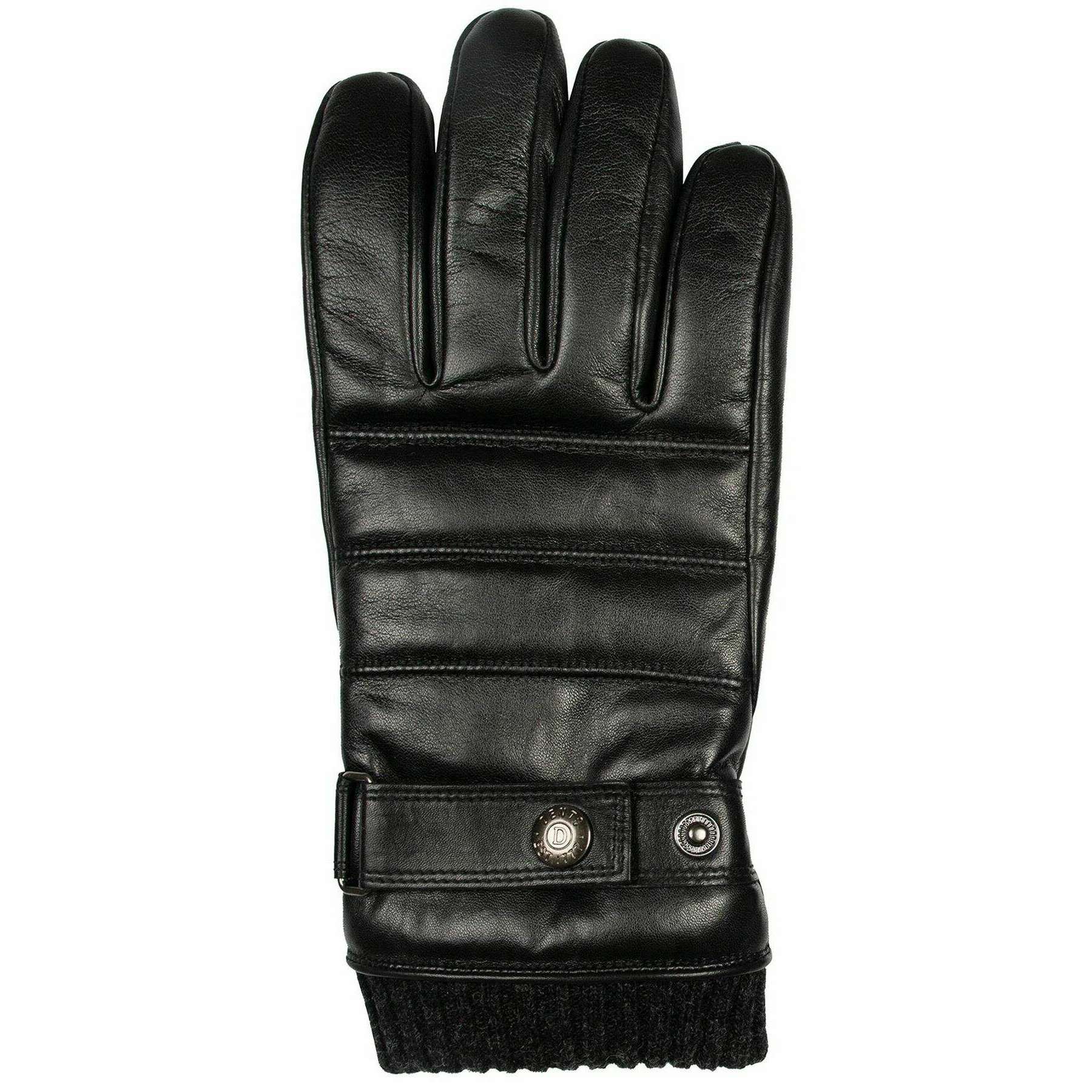 Brought to you by the brand Dents, these black men's skipton knitted cuff stitch detail leather gloves are made from outer: 100% hairsheep leather, lining: 100% polyester fleece. Also the black gloves are designed in a plain pattern, All the gloves come complete with dents tags. The Dents Skipton Knitted Cuff Stitch Detail Leather Gloves - Black have been crafted in the biker style combining a cool touch with comfort for riding or for plans during these colder seasons. Crafted with high-quality hair sheep leather ensures a water-resistant and long-lasting wear whilst having a soft faux fur lining for warmth and a snug wear. The knitted cuffs, elasticated wrist and the strap and roller fastening ensures a secure fit whilst ensuring the warmth is kept in and the cold is kept out.
