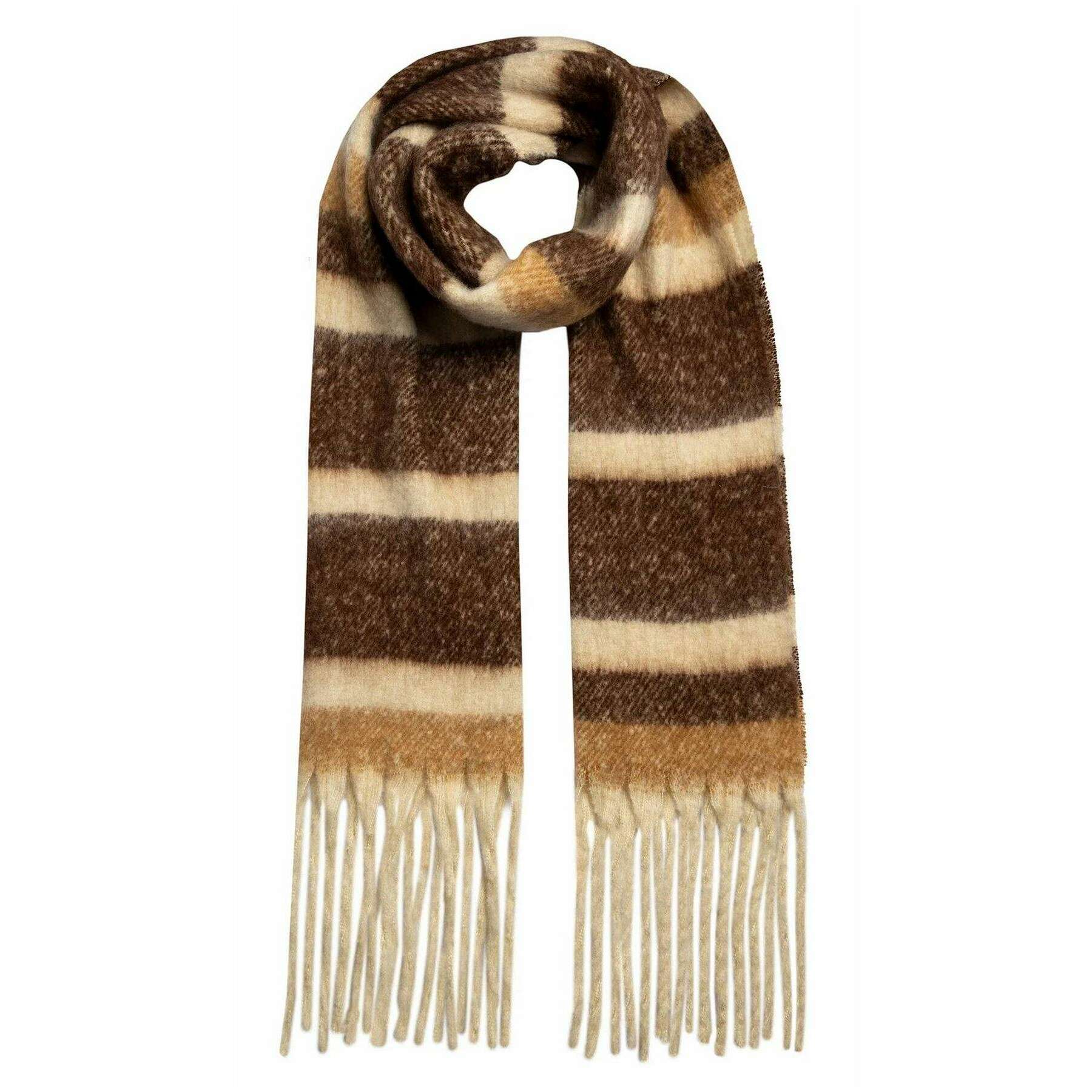 Dents Stripe Blanket Scarf - Chocolate Brown/Camel Beige