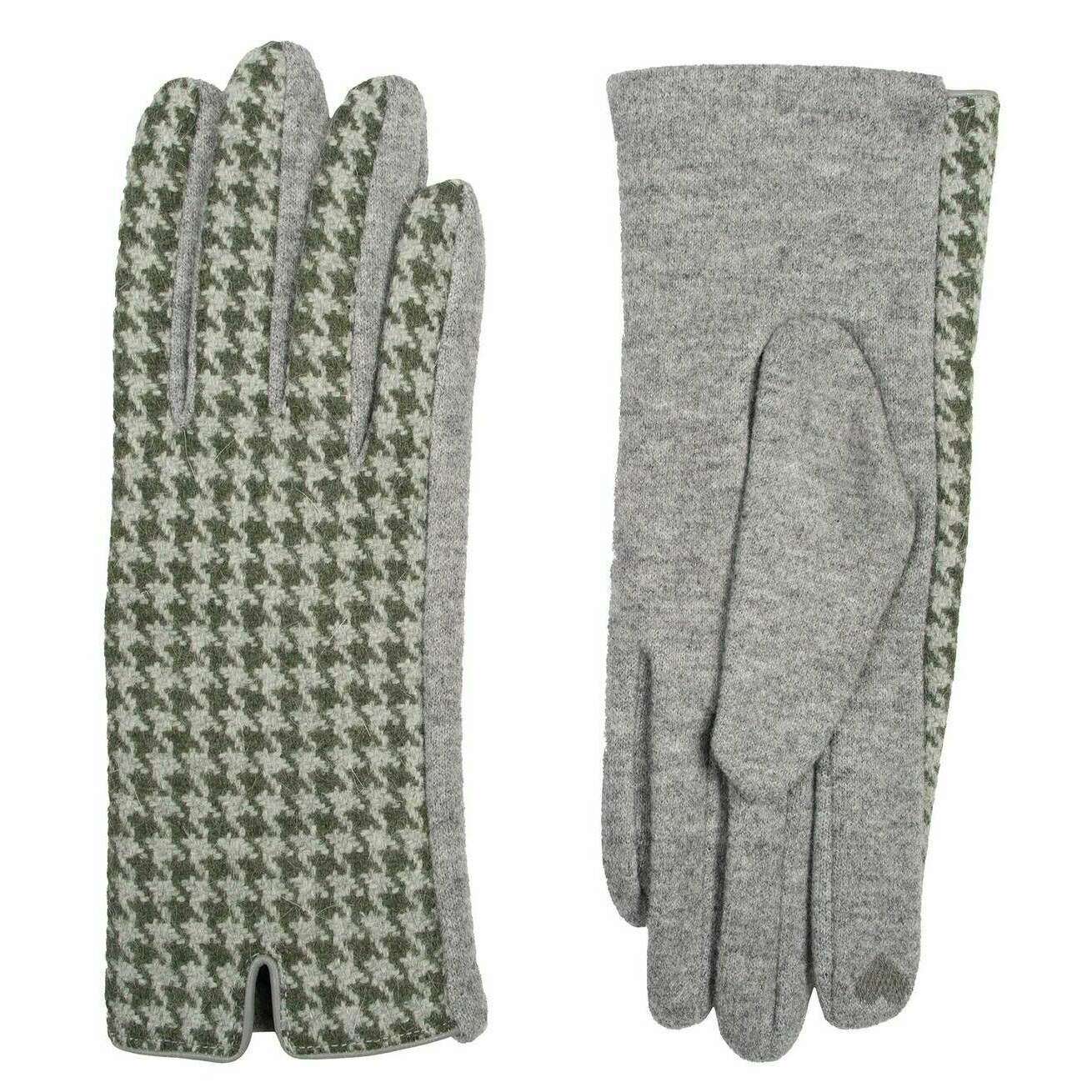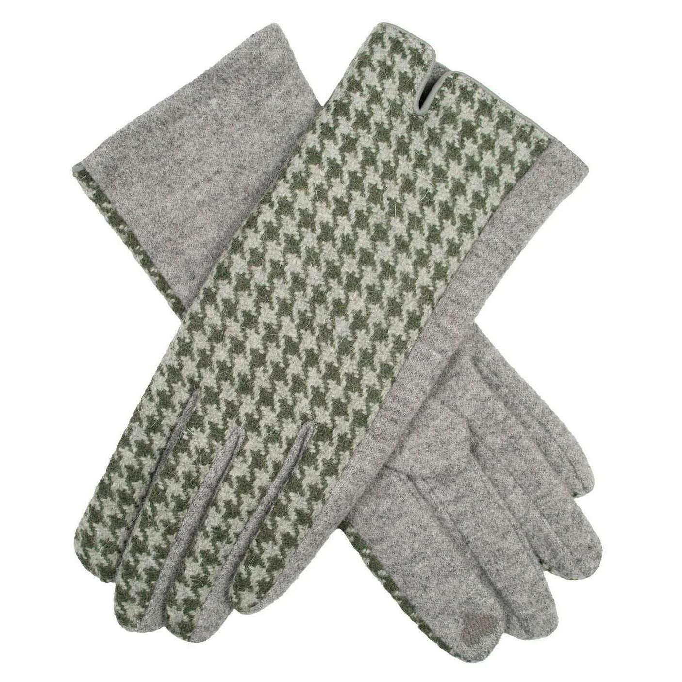 Dents Touchscreen Dogtooth Design Gloves - Forest Green