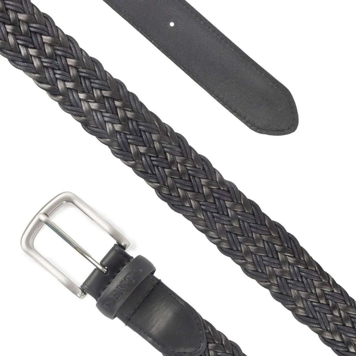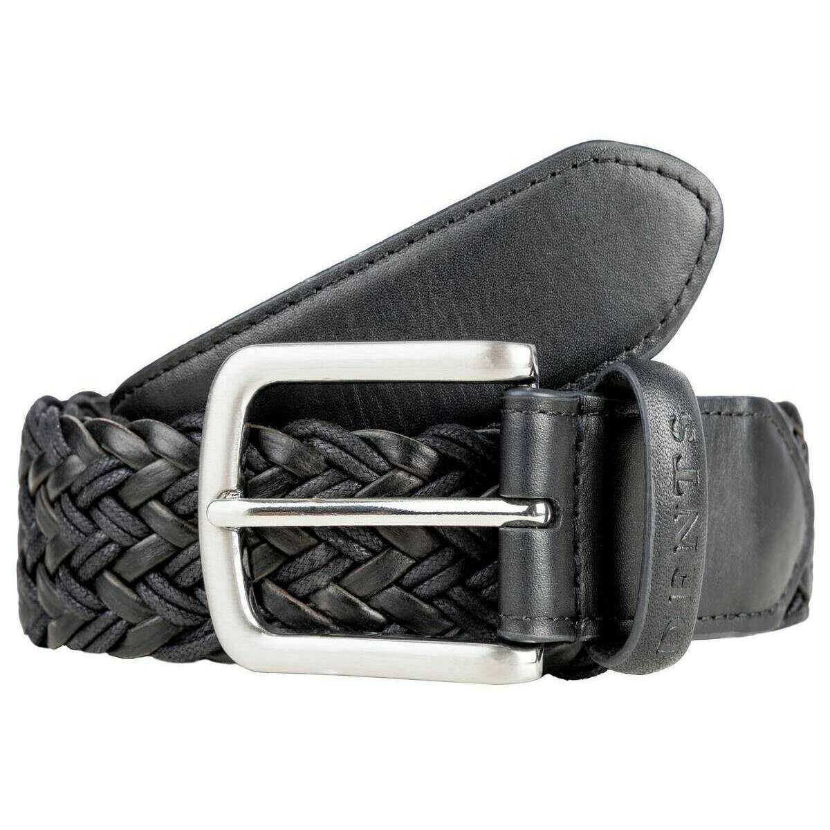 Dents Woven Leather and Cotton Belt - Black