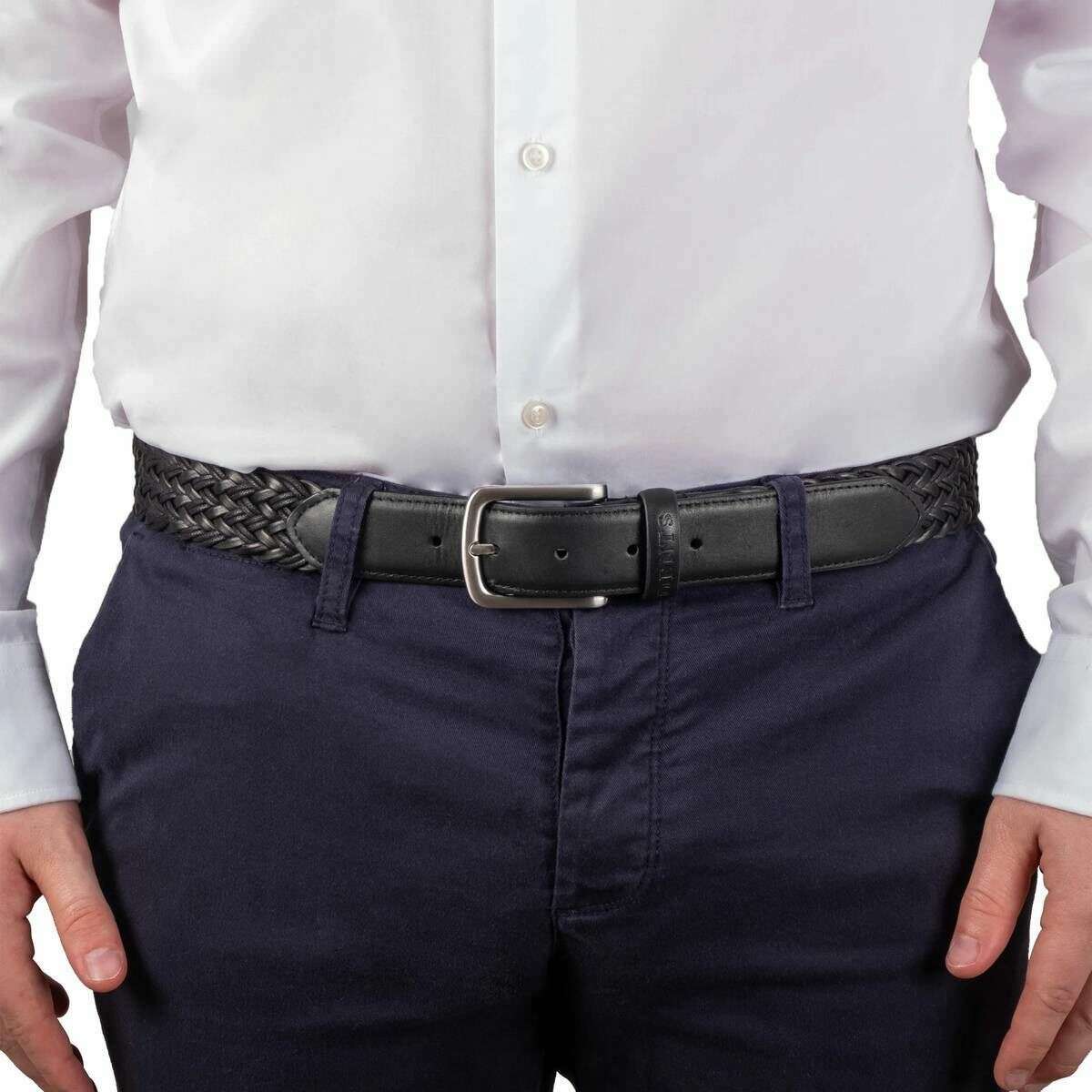 • Braided , Leather End , Square Buckle , Single Leather Keeper , Embossed , 5 Holes , 3.5cm Width
