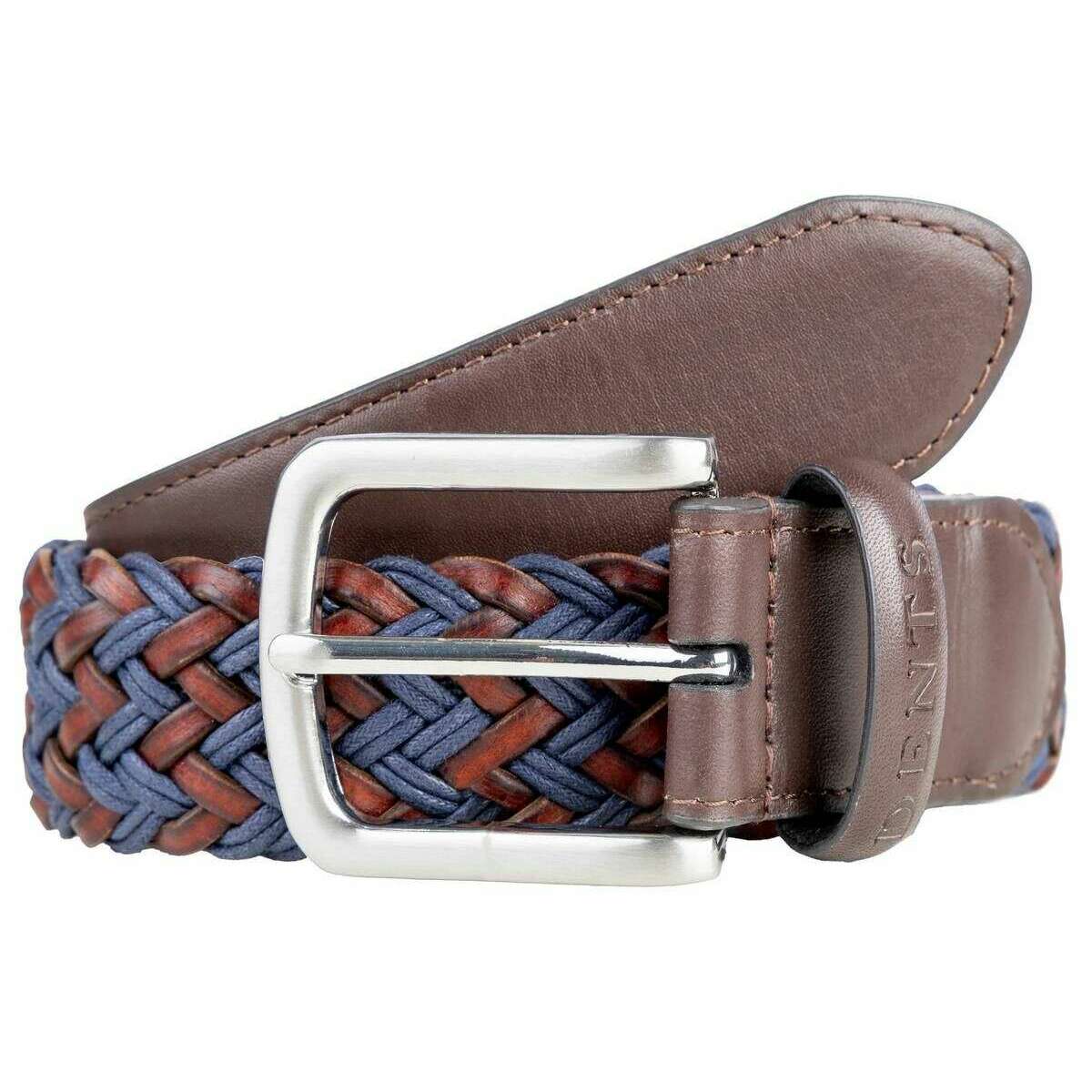 This men's woven leather and cotton belt has been made from 100% leather, featured in a blue colour and is from the brand Dents. All the belts come complete with dents tags. The Dents Woven Leather and Cotton Belt - Blue is an ideal choice of you are looking to bring a bit of stylish flair to your wardrobe. Its plaited structure gives it a stunning overall look which will compliment your outfit on both casual and formal occasions perfectly. This belt features a single leather keeper, satin nickel colour fittings and is unlined.