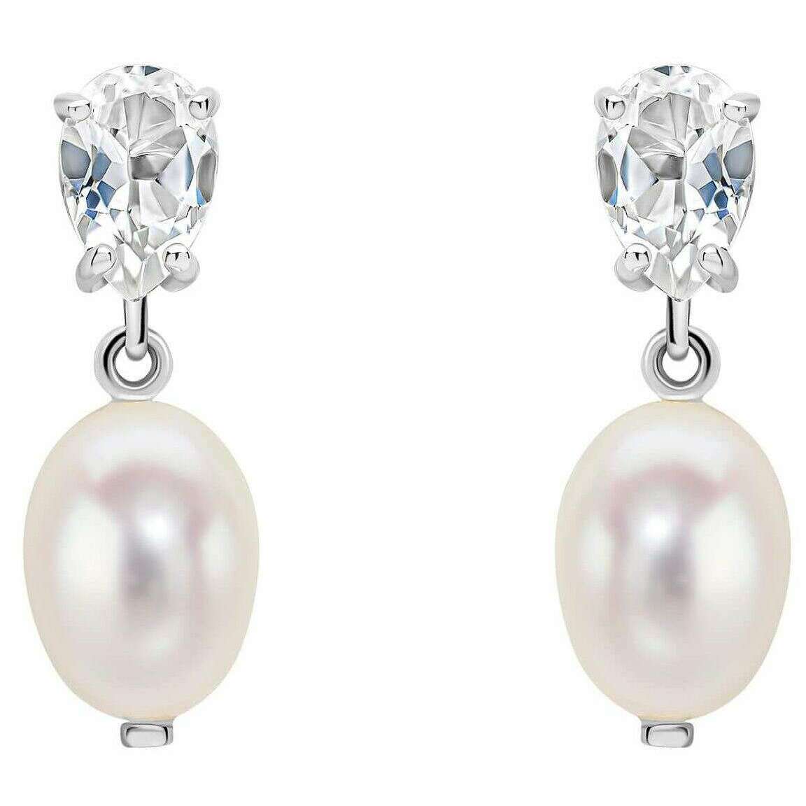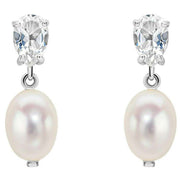 Elements Gold Baroque Pearl and Topaz 9ct Gold Earrings - Silver/White