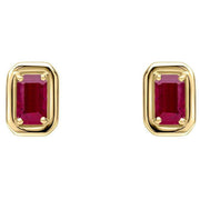 Elements Gold Chunky Border Ruby 9ct Gold Earrings - Gold/Red