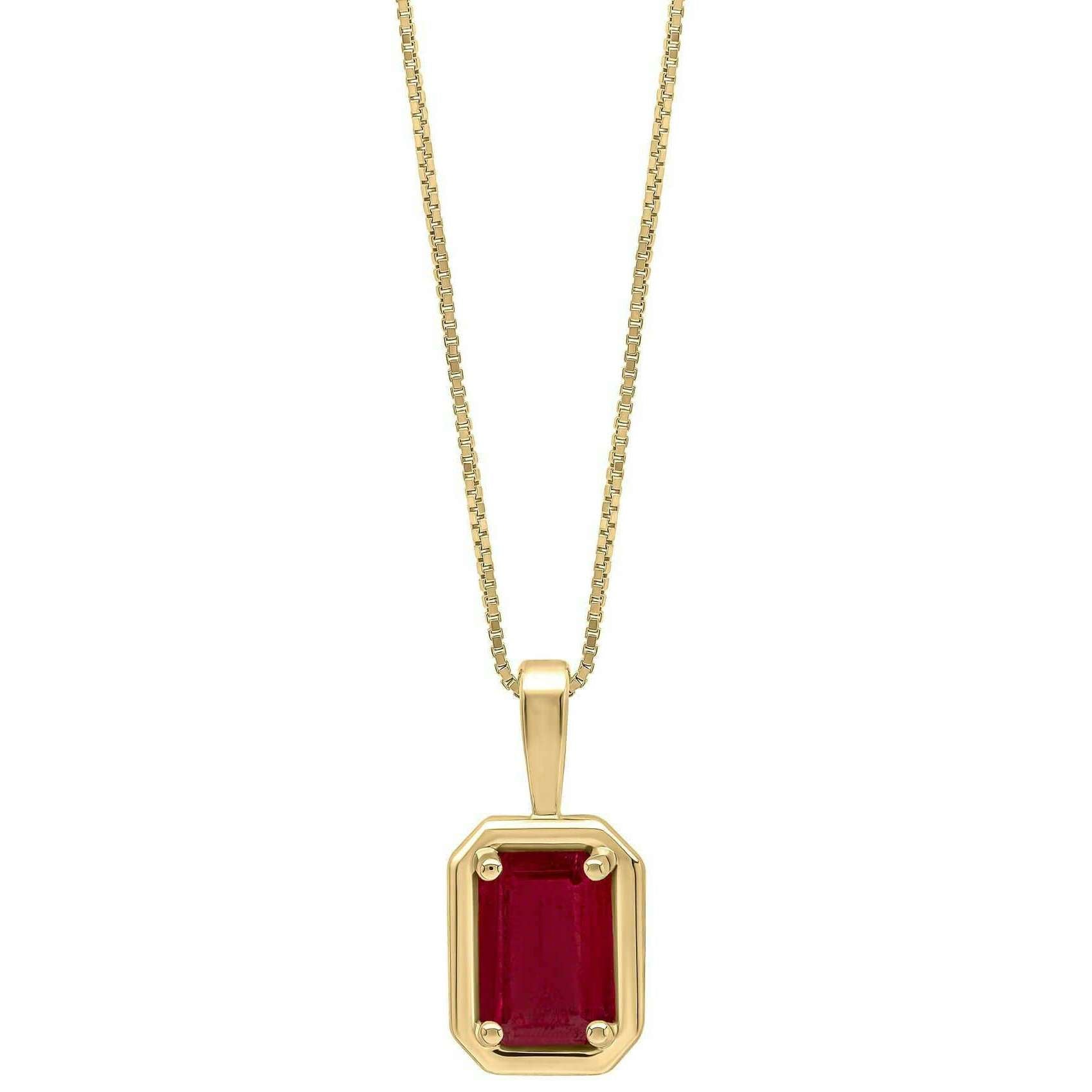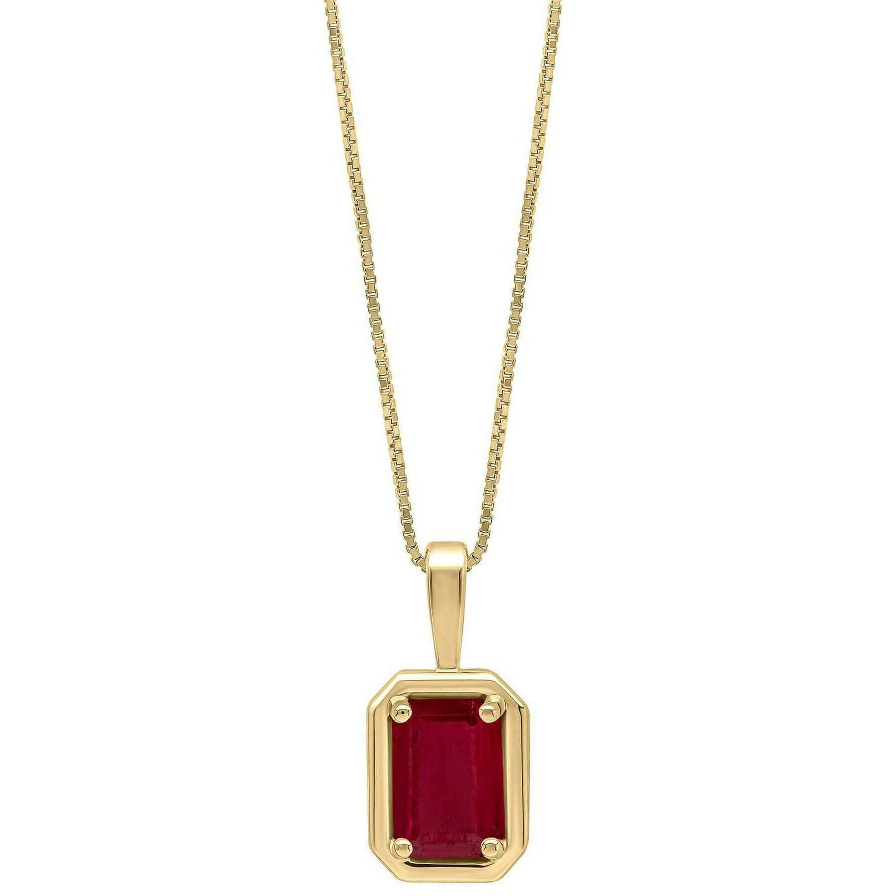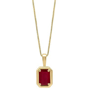 Elements Gold Chunky Border Ruby 9ct Gold Pendant - Gold/Red