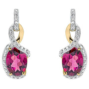 Elements Gold Elegant Twist Garnet 9ct Gold Earrings - Gold/Red