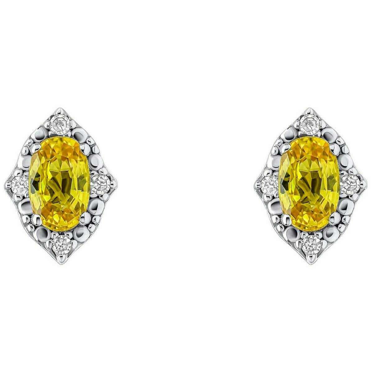 Elements Gold Oval Sapphire and Diamond 9ct Gold Earrings - Gold/Yellow