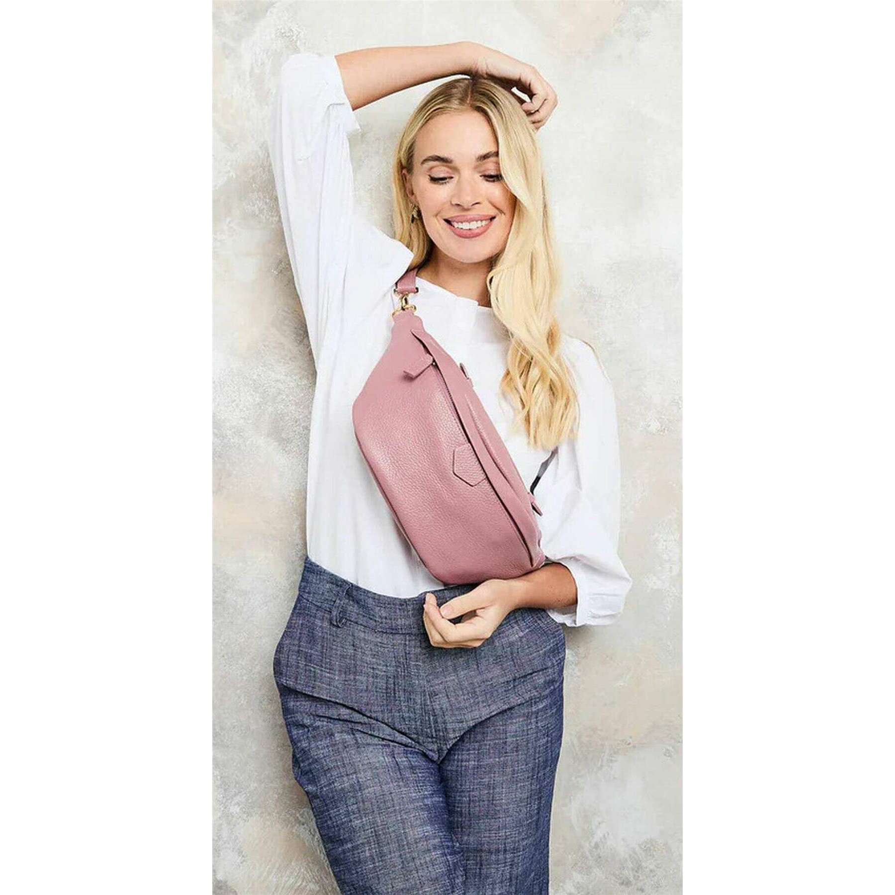 This arc sling bag for women is fashioned by the brand Elie Beaumont in a pink colour and is made from 100% geniune leather. It measures 17cm(height) x 38cm(width) x 11cm(depth). Elie Beaumont have made this arc sling bag in Italy. All the bags come complete with elie beaumont packaging. The Elie Beaumont Arc Sling Bag - Dusty Rose Pink is handcrafted in Italy from luxurious genuine leather, offering effortless style and adaptability for women on the move. Its thoughtfully designed layout includes a full-length external pocket for easy access to daily essentials, while an interior pocket keeps cards and cash secure yet conveniently reachable. The spacious main compartment ensures everything stays organised without compromising on style. With a sleek single-strap design, this arc sling can be worn across the body or over one shoulder, making it a truly multifunctional accessory. Finished with elegant gold hardware and supplied with a matching leather strap, it s the perfect blend of practicality and sophistication.