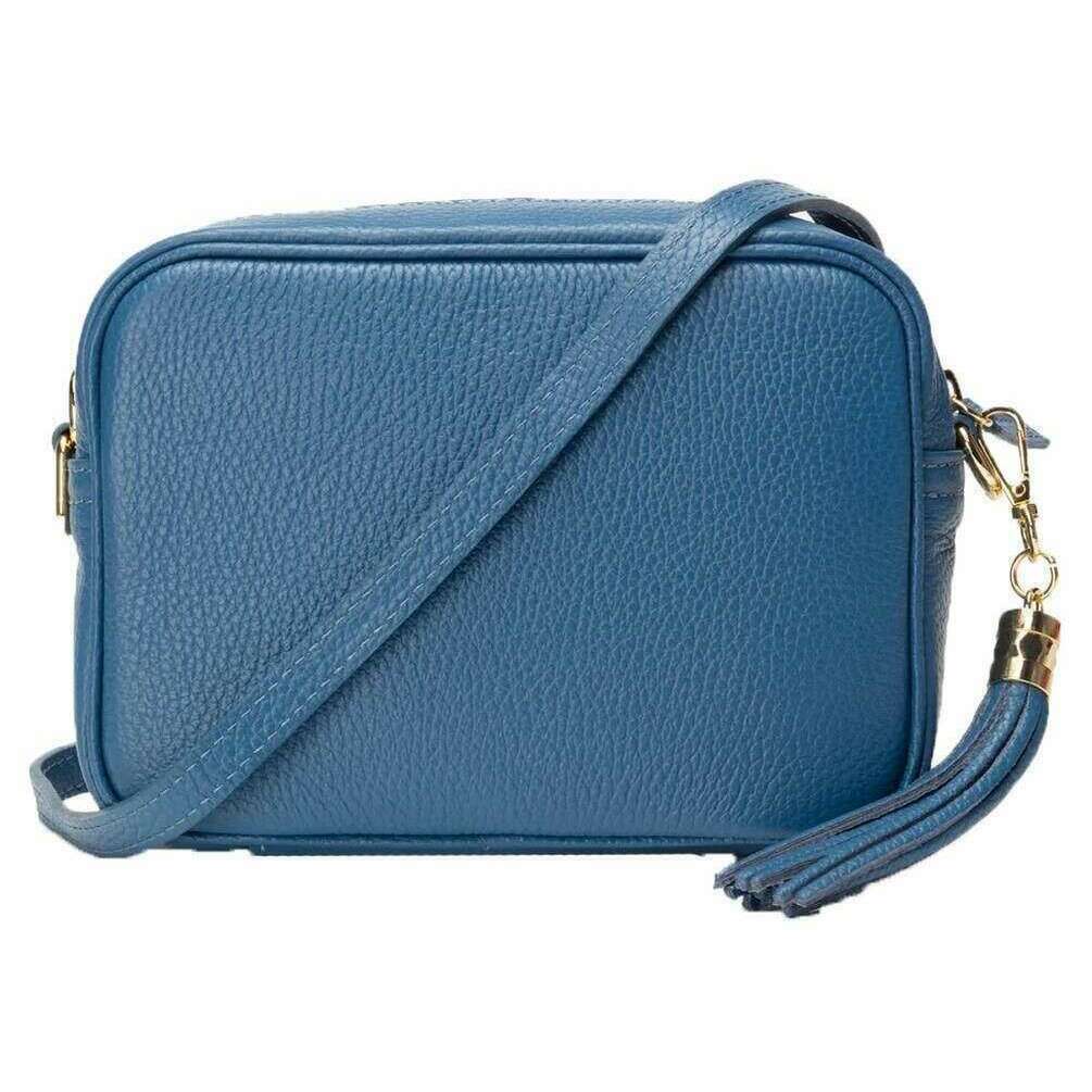 This women's crossbody bag has been made from 100% genuine premium leather, featured in a blue colour and is from the brand Elie Beaumont. It measures 15cm(height) x 20cm(width) x 7cm(depth). Elie Beaumont have made this crossbody bag in Italy. All the bags come complete with elie beaumont packaging. The Elie Beaumont Crossbody Bag - Denim Blue trendy and versatile is a must-have to add to your collection with the gorgeous and useful features. The detachable body strap can be adjusted to your liking depending on the outfit and the look you are going for perfect for all occasions. The large main compartment and interior pocket is great for optimal storage and organisation to hold everything and more that you need. The double layer reinforced base and double stitched side seams ensure this bag is durable and long-lasting. Crafted from premium grained genuine leather is complete with gold hardware and a matching detachable tassel for a girly touch.