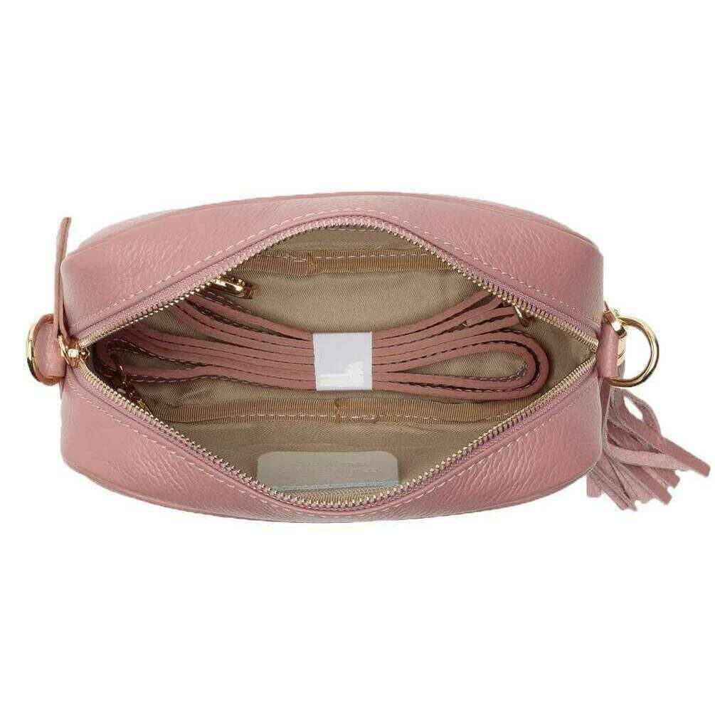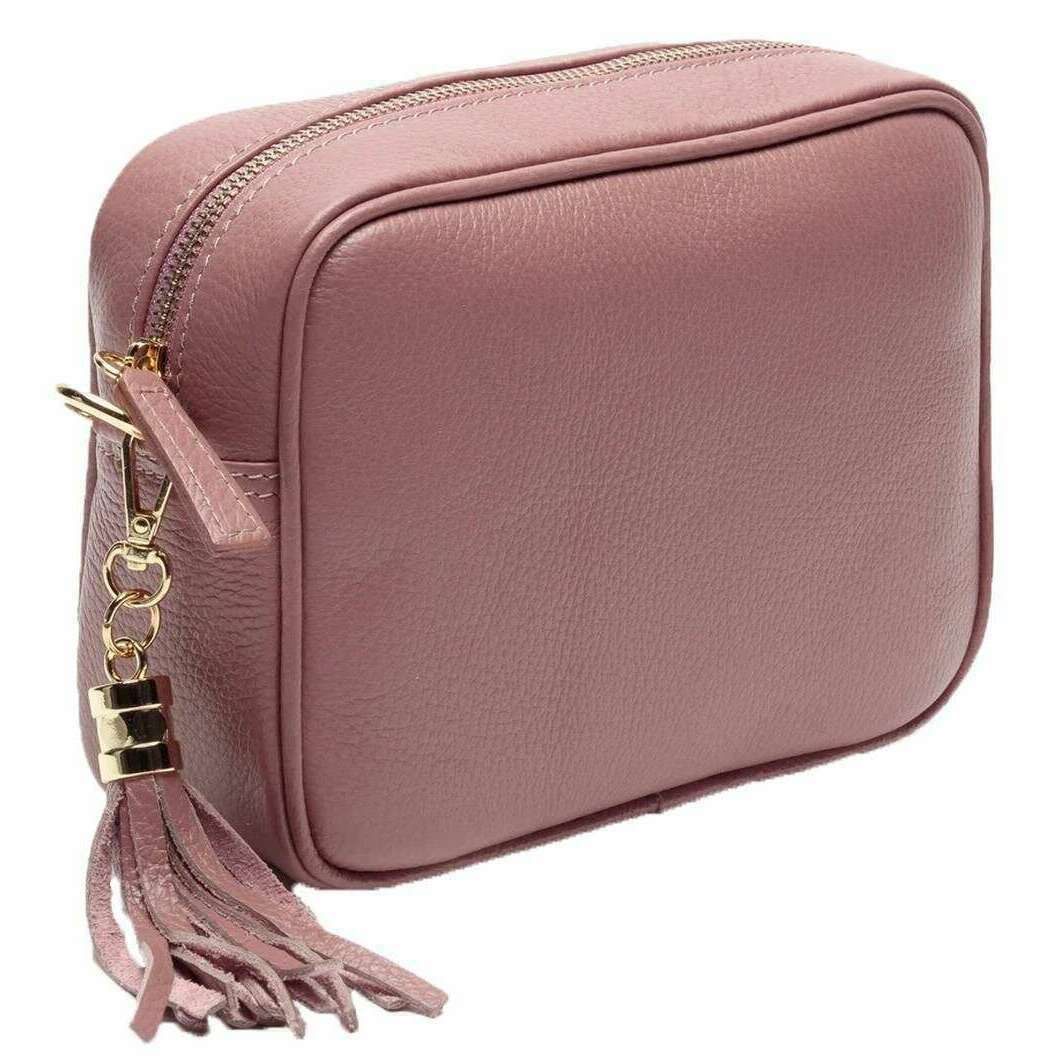 This crossbody bag for women is fashioned by the brand Elie Beaumont in a pink colour and is made from 100% genuine premium leather. It measures 15cm(height) x 20cm(width) x 7cm(depth). Elie Beaumont have made this crossbody bag in Italy. All the bags come complete with elie beaumont packaging. The Elie Beaumont Crossbody Bag - Dusty Rose Pink trendy and versatile is a must-have to add to your collection with the gorgeous and useful features. The detachable body strap can be adjusted to your liking depending on the outfit and the look you are going for perfect for all occasions. The large main compartment and interior pocket is great for optimal storage and organisation to hold everything and more that you need. The double layer reinforced base and double stitched side seams ensure this bag is durable and long-lasting. Crafted from premium grained genuine leather is complete with gold hardware and a matching detachable tassel for a girly touch.
