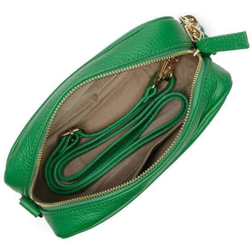 This crossbody bag for women is fashioned by the brand Elie Beaumont in a green colour and is made from 100% genuine premium leather. It measures 15cm(height) x 20cm(width) x 7cm(depth). All the bags come complete with elie beaumont packaging. The Elie Beaumont Crossbody Bag - Emerald Green trendy and versatile is a must-have to add to your collection with the gorgeous and useful features. The detachable body strap can be adjusted to your liking depending on the outfit and the look you are going for perfect for all occasions. The large main compartment and interior pocket is great for optimal storage and organisation to hold everything and more that you need. The double layer reinforced base and double stitched side seams ensure this bag is durable and long-lasting. Crafted from premium grained genuine leather is complete with gold hardware and a matching detachable tassel for a girly touch.