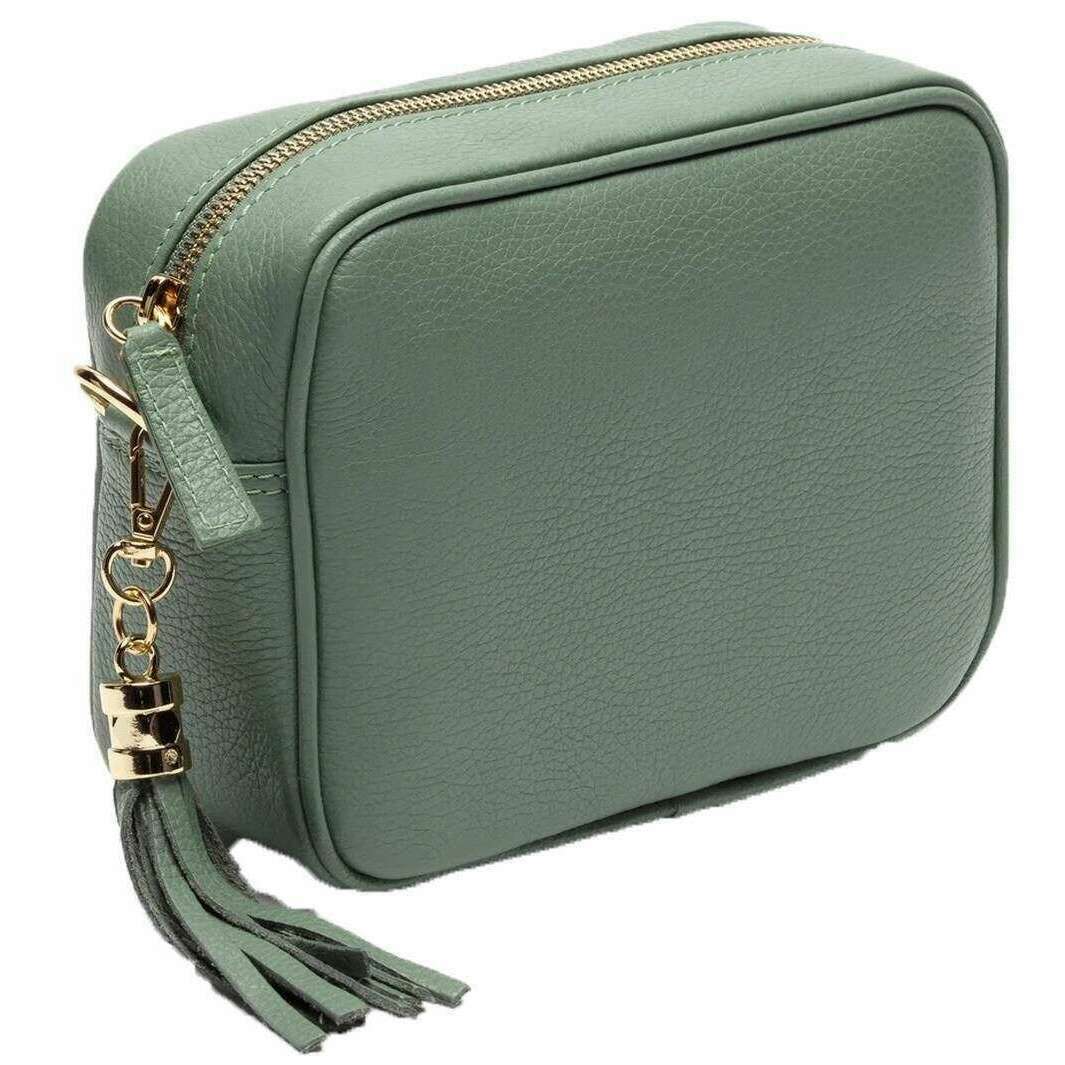 Introducing this women's crossbody bag by Elie Beaumont, it is manufactured from 100% genuine premium leather in a mint green colour. It measures 15cm(height) x 20cm(width) x 7cm(depth). Elie Beaumont have made this crossbody bag in Italy. All the bags come complete with elie beaumont packaging. The Elie Beaumont Crossbody Bag - Mint Green trendy and versatile is a must-have to add to your collection with the gorgeous and useful features. The detachable body strap can be adjusted to your liking depending on the outfit and the look you are going for perfect for all occasions. The large main compartment and interior pocket is great for optimal storage and organisation to hold everything and more that you need. The double layer reinforced base and double stitched side seams ensure this bag is durable and long-lasting. Crafted from premium grained genuine leather is complete with gold hardware and a matching detachable tassel for a girly touch.