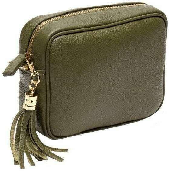 Introducing this women's crossbody bag by Elie Beaumont, it is manufactured from 100% genuine premium leather in a olive green colour. It measures 15cm(height) x 20cm(width) x 7cm(depth). All the bags come complete with elie beaumont packaging. The Elie Beaumont Crossbody Bag - Olive Green trendy and versatile is a must-have to add to your collection with the gorgeous and useful features. The detachable body strap can be adjusted to your liking depending on the outfit and the look you are going for perfect for all occasions. The large main compartment and interior pocket is great for optimal storage and organisation to hold everything and more that you need. The double layer reinforced base and double stitched side seams ensure this bag is durable and long-lasting. Crafted from premium grained genuine leather is complete with gold hardware and a matching detachable tassel for a girly touch.