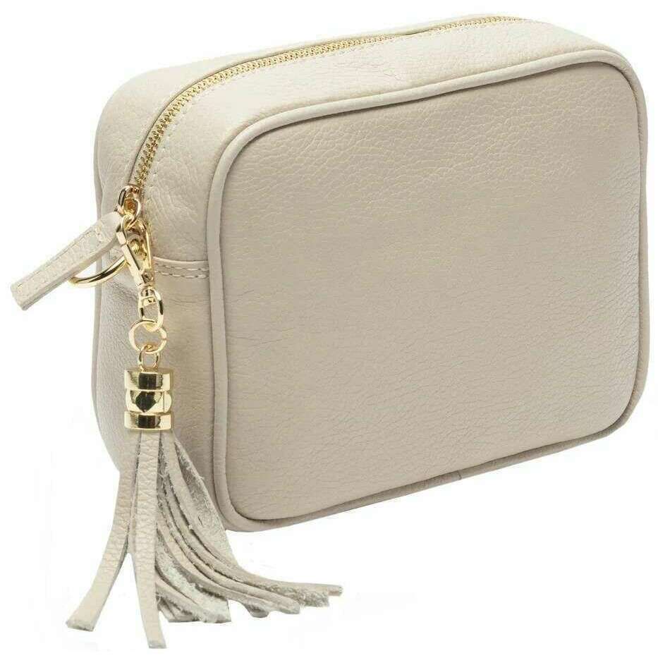 This women's crossbody bag by the brand Elie Beaumont is made from 100% genuine premium leather and is showcased in beige. It measures 15cm(height) x 20cm(width) x 7cm(depth). All the bags come complete with elie beaumont packaging. The Elie Beaumont Crossbody Bag - Stone Beige trendy and versatile is a must-have to add to your collection with the gorgeous and useful features. The detachable body strap can be adjusted to your liking depending on the outfit and the look you are going for perfect for all occasions. The large main compartment and interior pocket is great for optimal storage and organisation to hold everything and more that you need. The double layer reinforced base and double stitched side seams ensure this bag is durable and long-lasting. Crafted from premium grained genuine leather is complete with gold hardware and a matching detachable tassel for a girly touch.