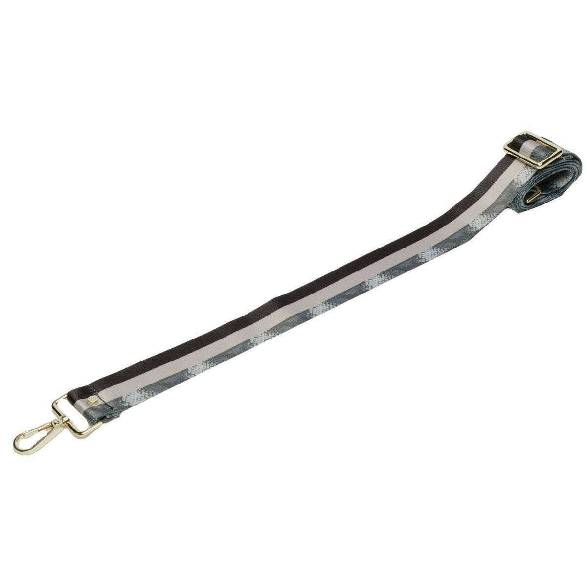 Brought to you by the brand Elie Beaumont, this python stripe black women's crossbody strap is made from canvas. It measures 127cm(height) x 5cm(width). All the bags come complete with elie beaumont packaging. The Elie Beaumont Crossbody Strap - Python Stripe Black is a fantastic way to dress your crossbody bag up or down, whatever the occasion! This strap is fully adjustable so can be worn either as a crossbody or on the shoulder.