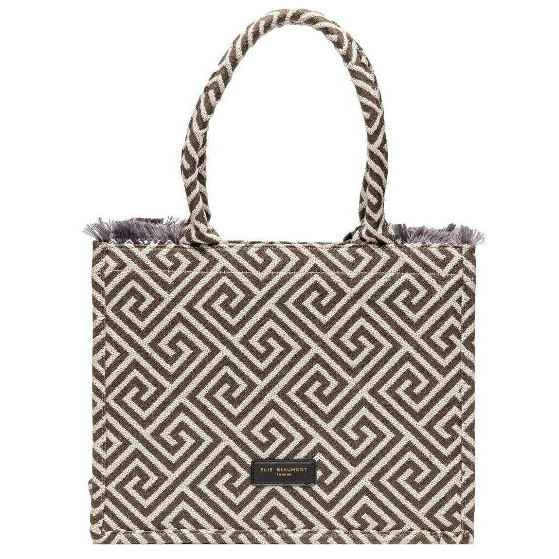 Elie Beaumont Fabric Midi Tote Bag - Grey Ivory Grecian