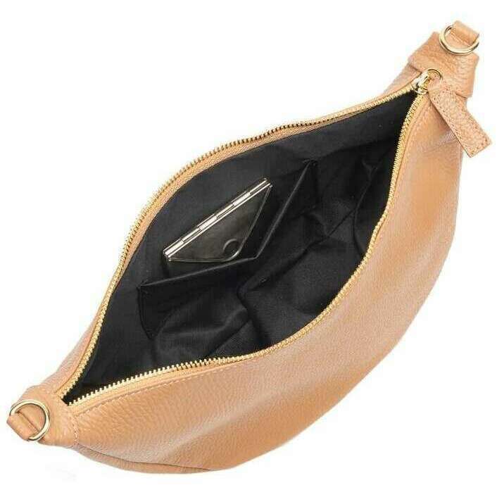 Brought to you by the brand Elie Beaumont, this camel brown women's hobo bag is made from 100% genuine premium leather. It measures 15cm(height) x 31cm(width) x 8cm(depth). All the bags come complete with elie beaumont packaging. The Elie Beaumont Hobo Bag - Camel Brown is made to suit an everyday look to night attire with the versatile styling options. Featuring internal pockets for storage and organisation and a large main compartment to fit your essentials. Crafted from genuine premium leather gives a sleek and luxurious appeal whilst being durable and long lasting with its stitched side seams. Complete with gold hardware for sophistication.
